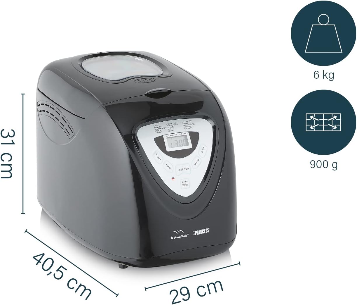 • Гъвкав капацитет от 680-900 г за 8-14 филийки хляб