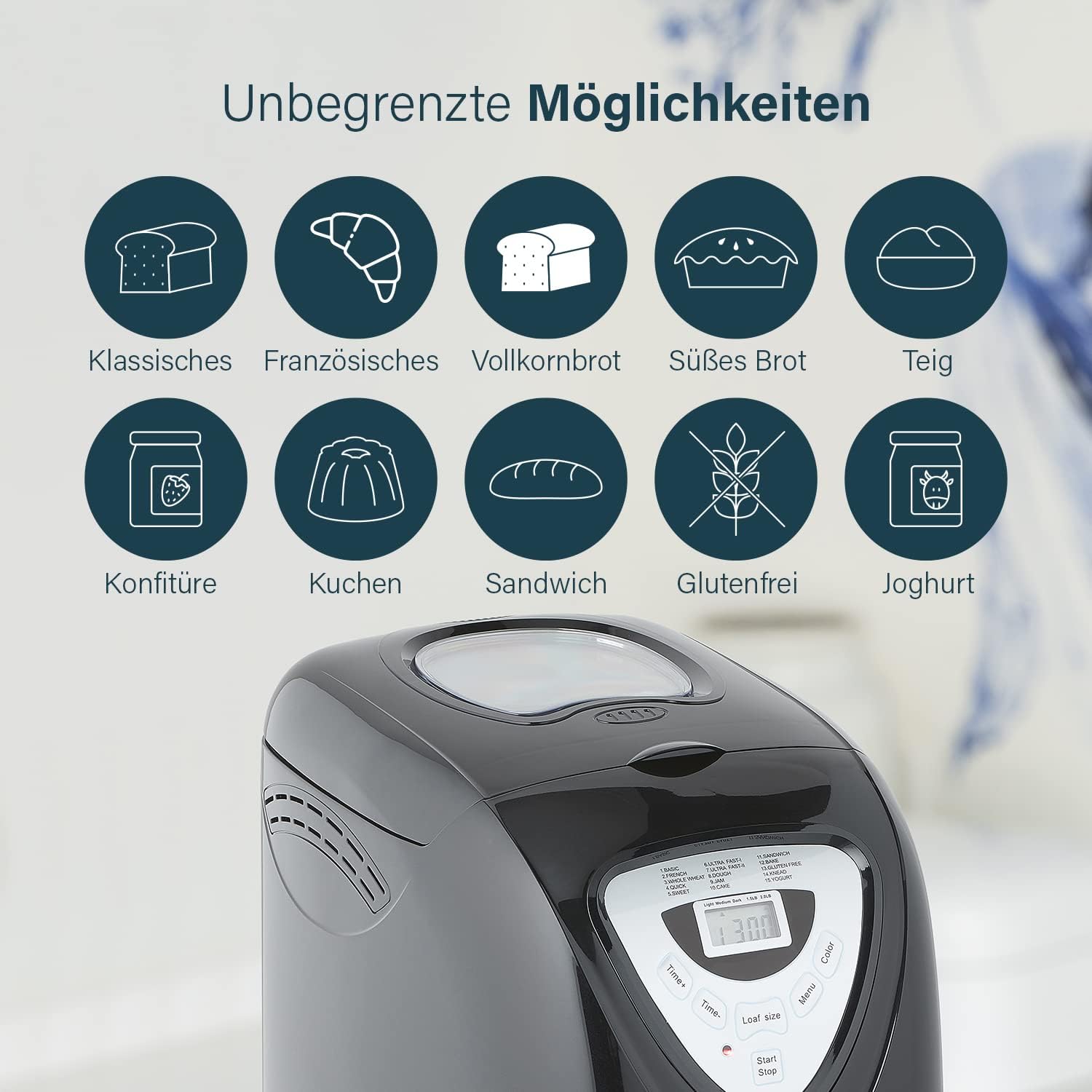 • 15 предварително зададени програми за печене и програма без глутен