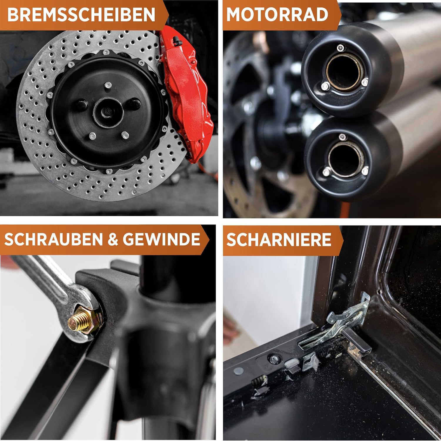 • Начин на употреба: нанесете медната грес върху почистените повърхности с четка или кърпа и разнесете равномерно. Не изисква време за излагане. Идеална като монтажна паста за ауспух, спирачни дискове, винтове, резби, панти и други части.