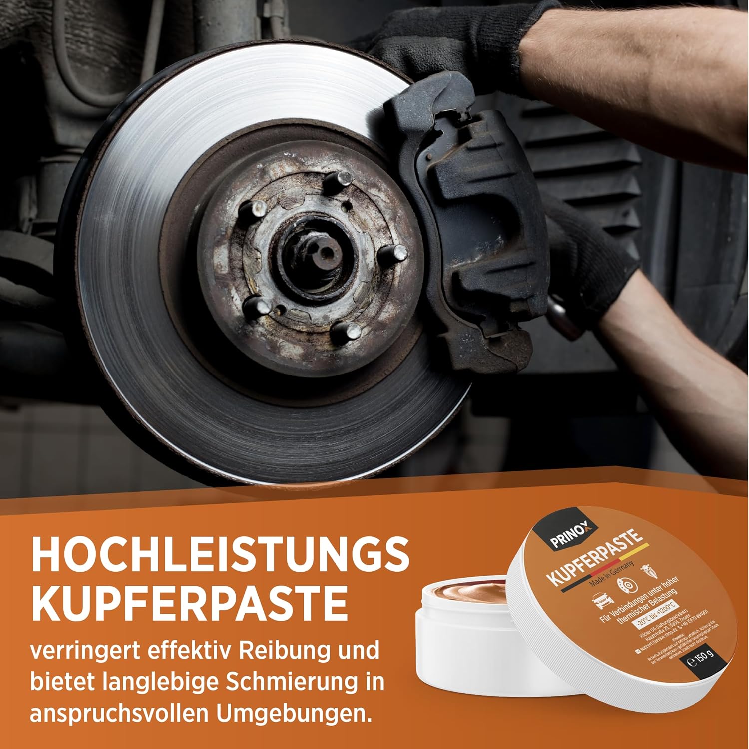 Prinox Professional Copper Paste 150g – Изключително устойчива на топлина до +1200°C – Медна грес-паста за автомобилни спирачки, ауспух, като смазочна паста за винтове, спирачна паста и др.