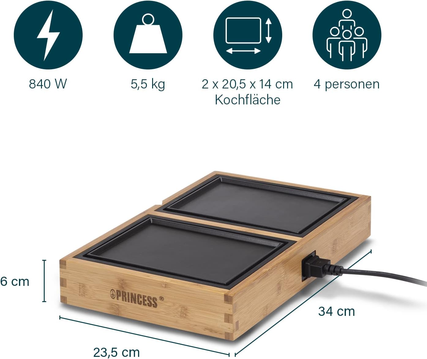 Настолната скара Princess Dinner4All е наистина задължителен елемент на вашата маса за хранене. Луксозният бамбуков корпус не само изглежда елегантен, но е и устойчив.