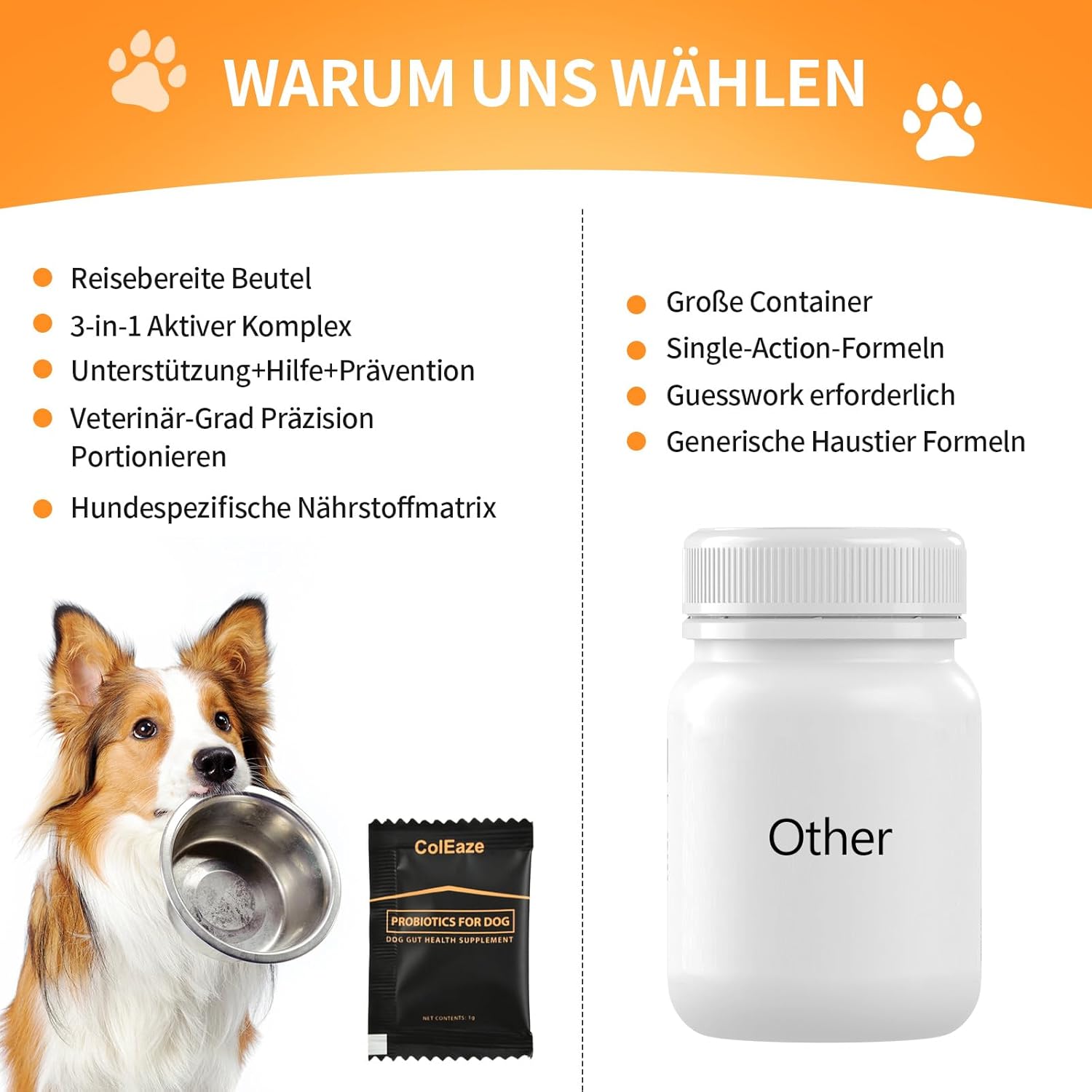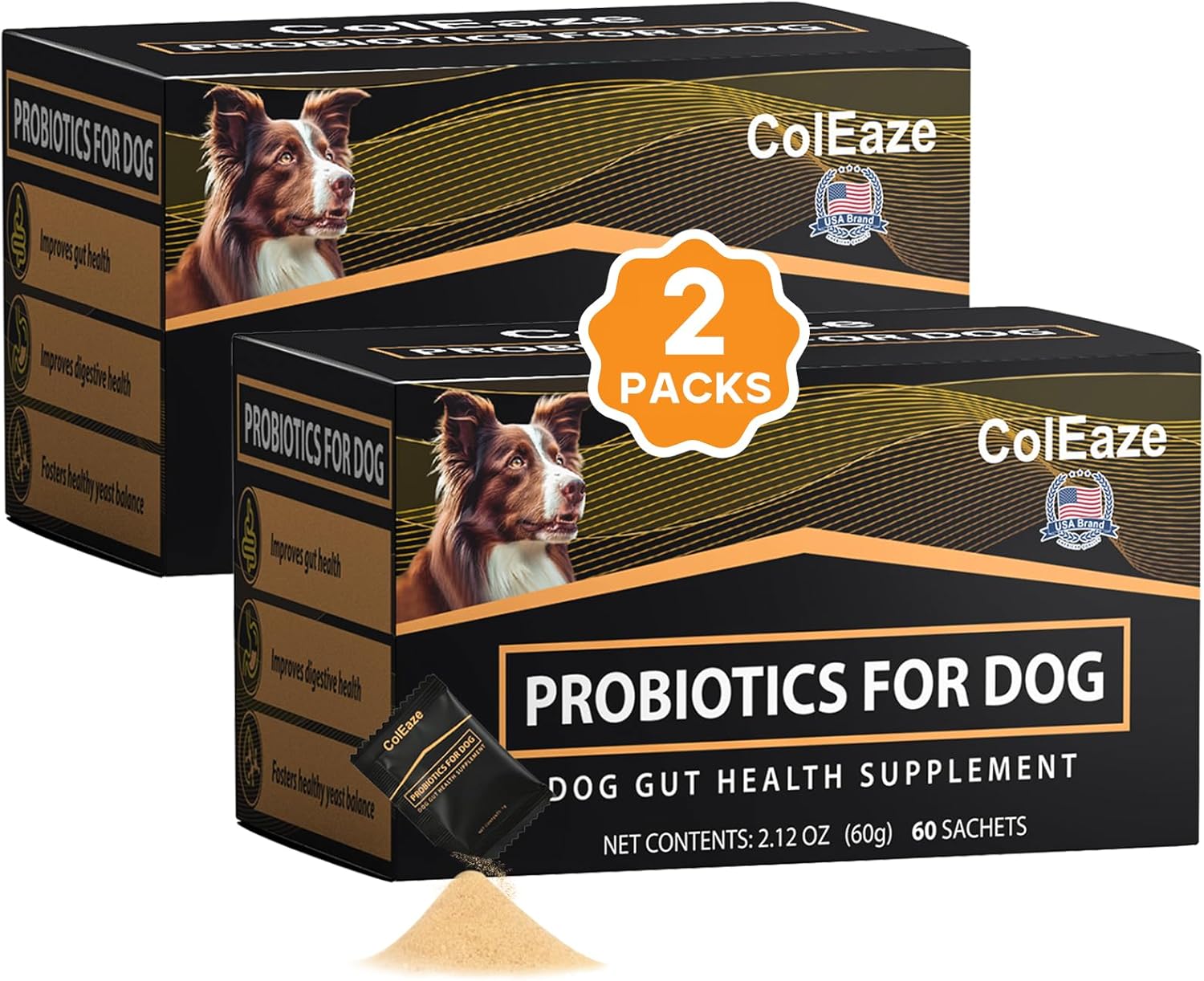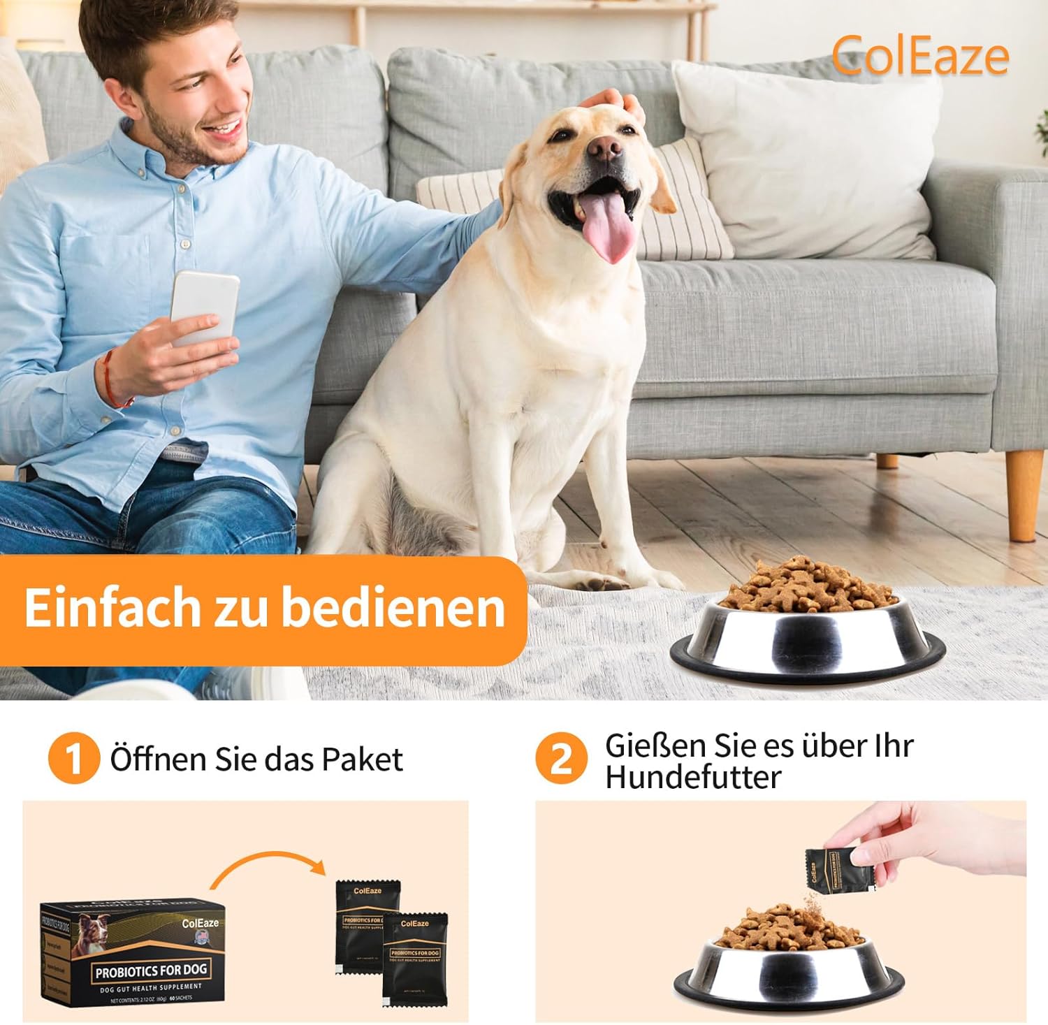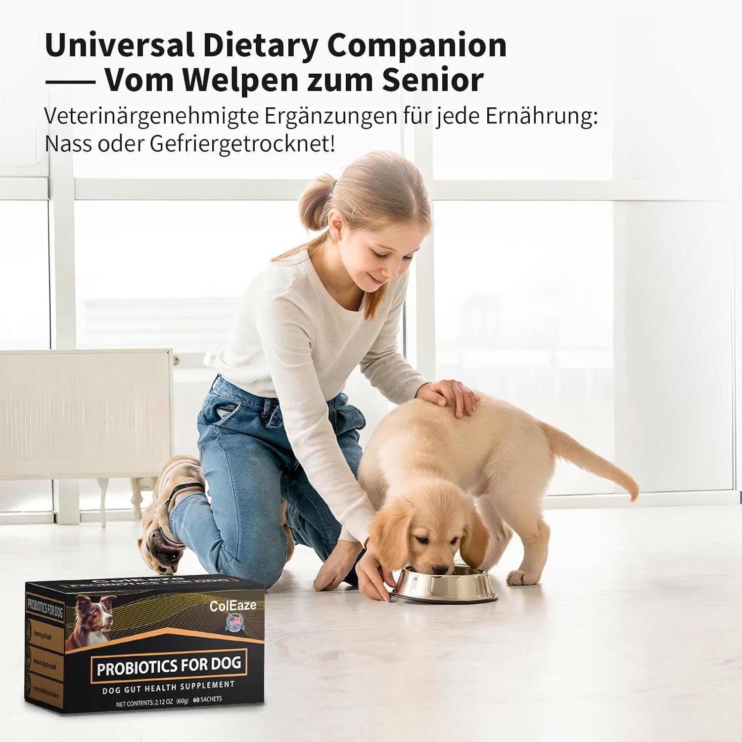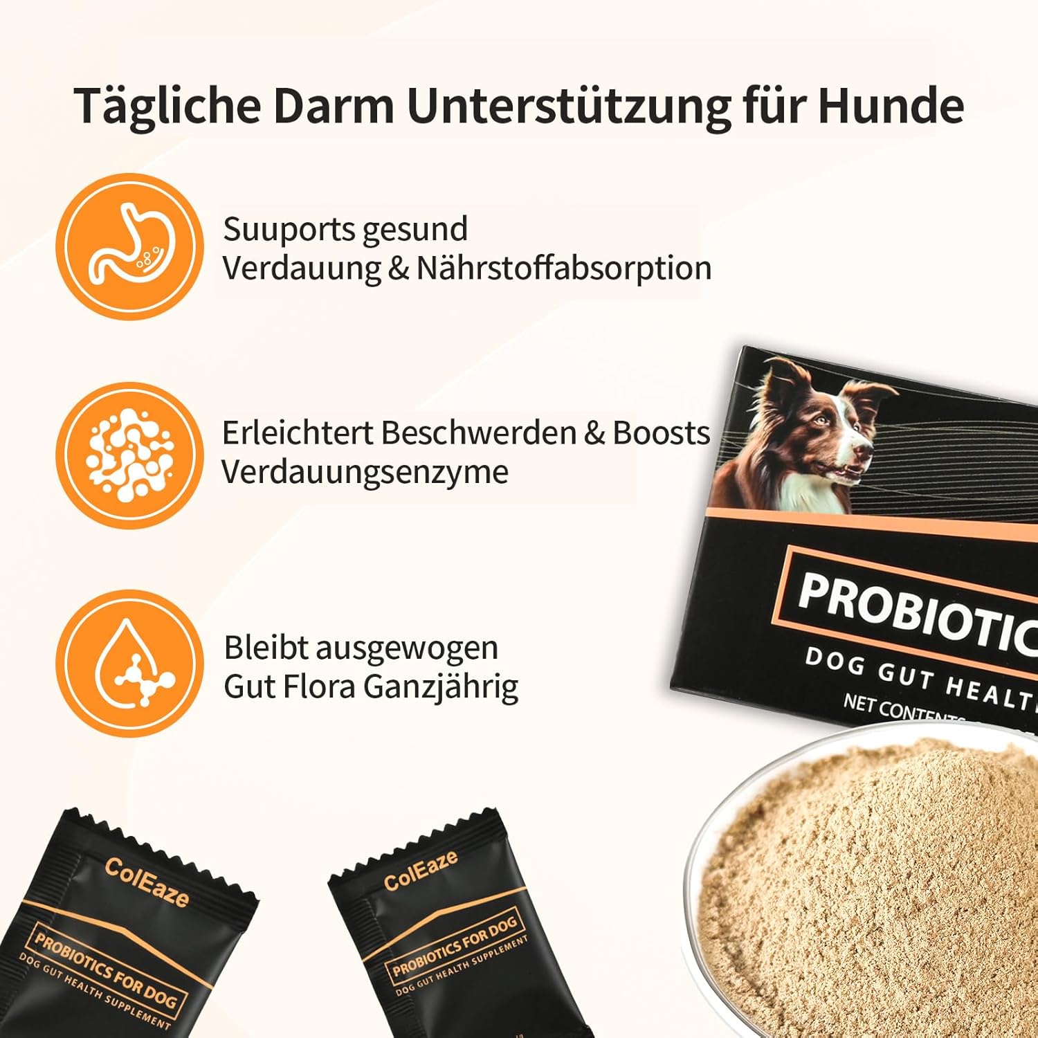 Пробиотичен прах за кучета - 60 порции x 2 опаковки - Бързо облекчение при диария и чувствително храносмилане | С пребиотици и ензими за силна имунна система и чревна флора | Просто смесете с храната