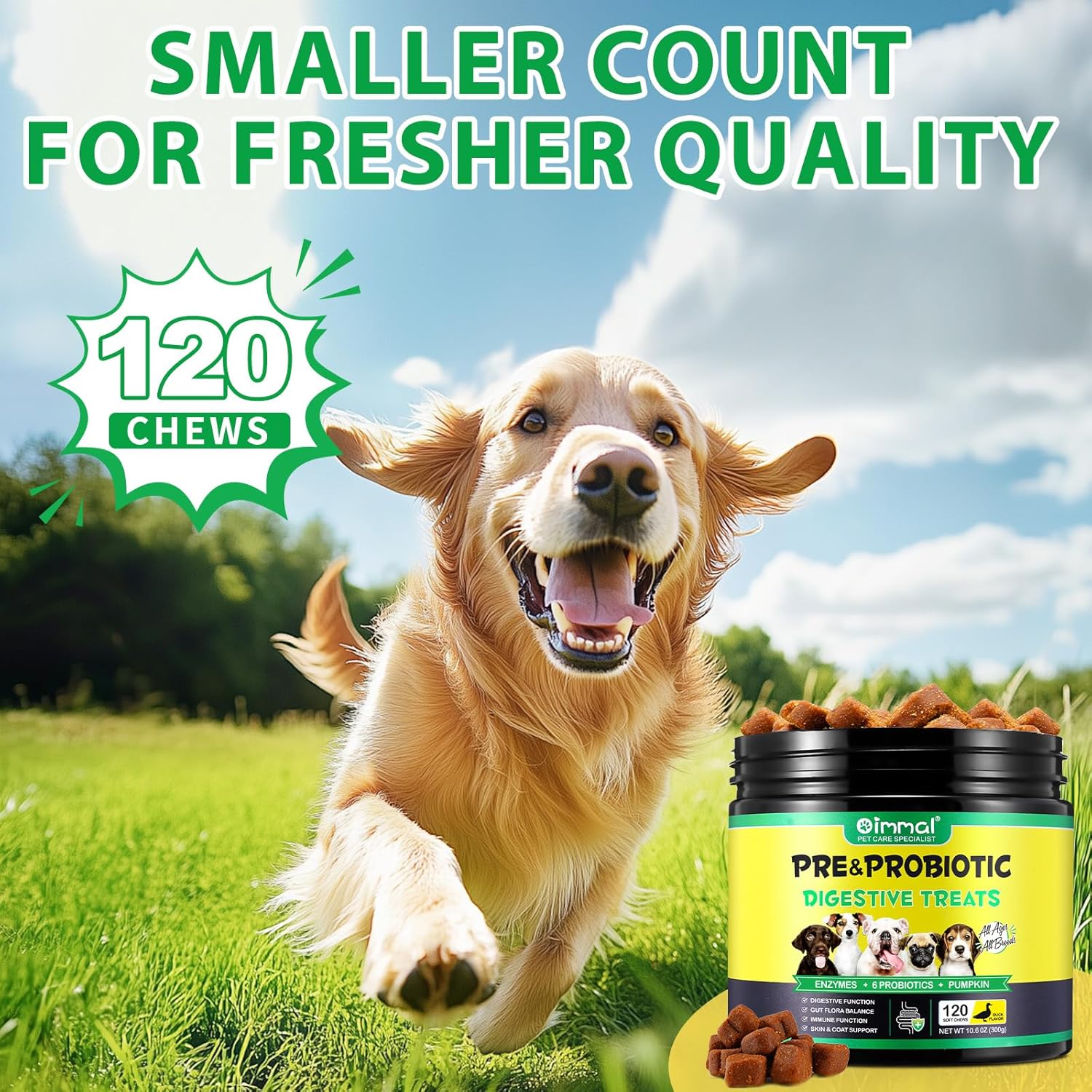 • 【Хранителна добавка за кожа, козина и имунна система】Това дъвчащо лакомство осигурява цялостна подкрепа, като съдържа пробиотици за кучета като балансирана хранителна добавка. Съставките спомагат за укрепване на естествените защитни сили и насърчават здрава кожа и козина за лъскав вид и цялостно благополучие.