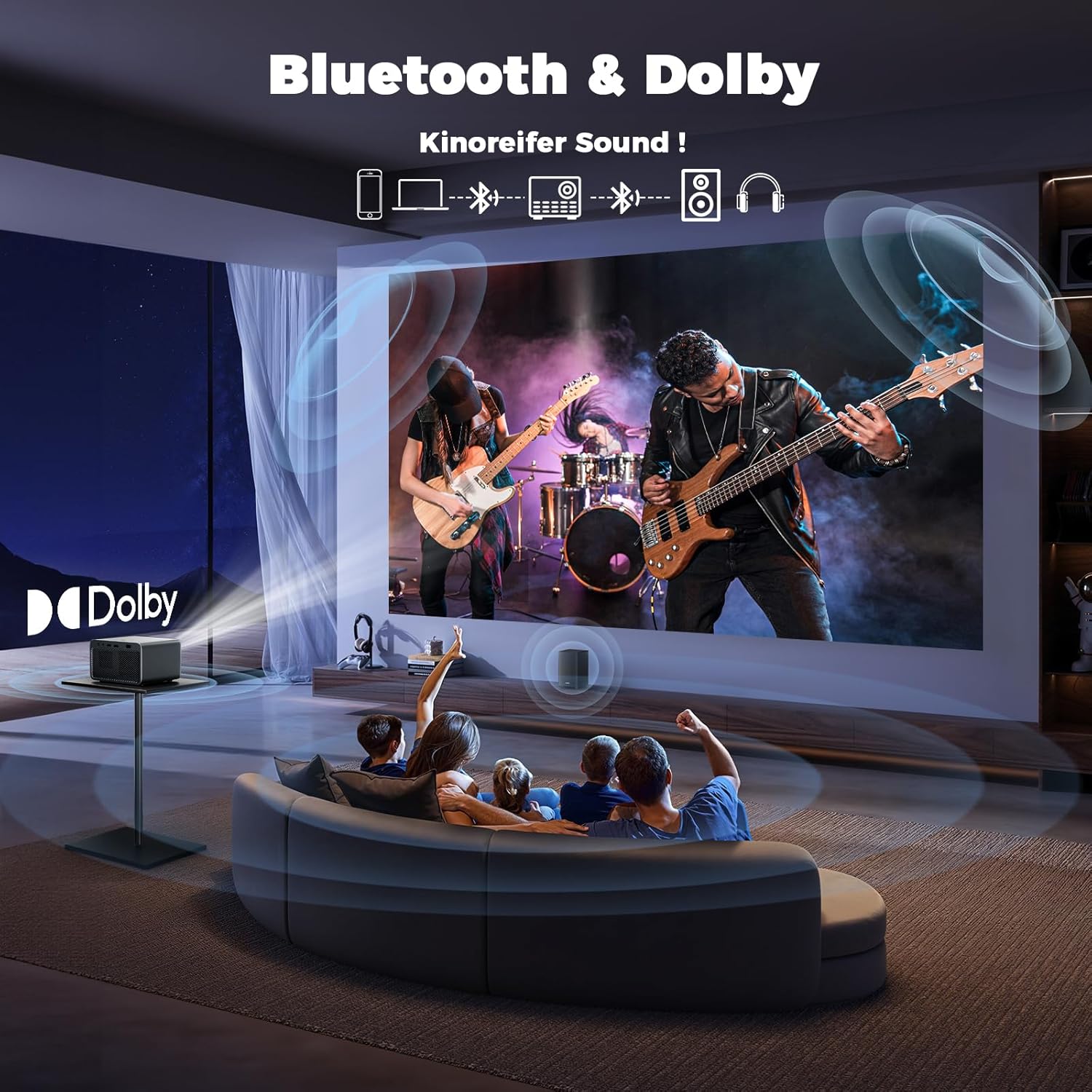 • Professional home cinema system: it is your intelligent all-in-one entertainment centre - L03Pro is not only a projector, but also the command centre of your home cinema. CEC function can control the projector, TV stick, PS4 and other devices with just one remote control. Bluetooth Volume Sync automatically syncs the volume adjustment of the speakers and projector. With the WiFi 6, Bluetooth 5.2 and quick adjustment buttons, you can easily adjust picture and sound during viewing. The L03Pro Bluetooth projector offers Dolby sound for movies, games and music in cinema quality and a real-time temperature display for reliable, long-lasting performance.