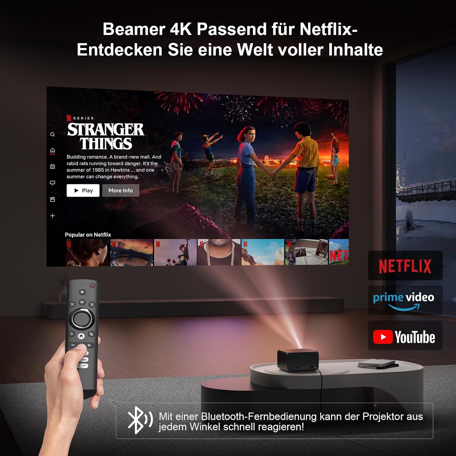 • Подходящ за Netflix, YouTube и над 5000 приложения - готов за употреба. Насладете се на незабавен достъп до популярни стрийминг услуги веднага след включване! Нашият проектор E88 е подходящ за Netflix - стриймвайте сериали и филми с най-добро качество, без допълнителна телевизионна кутия или адаптери. Просто го включете, отпуснете се и се насладете на вашето домашно кино.