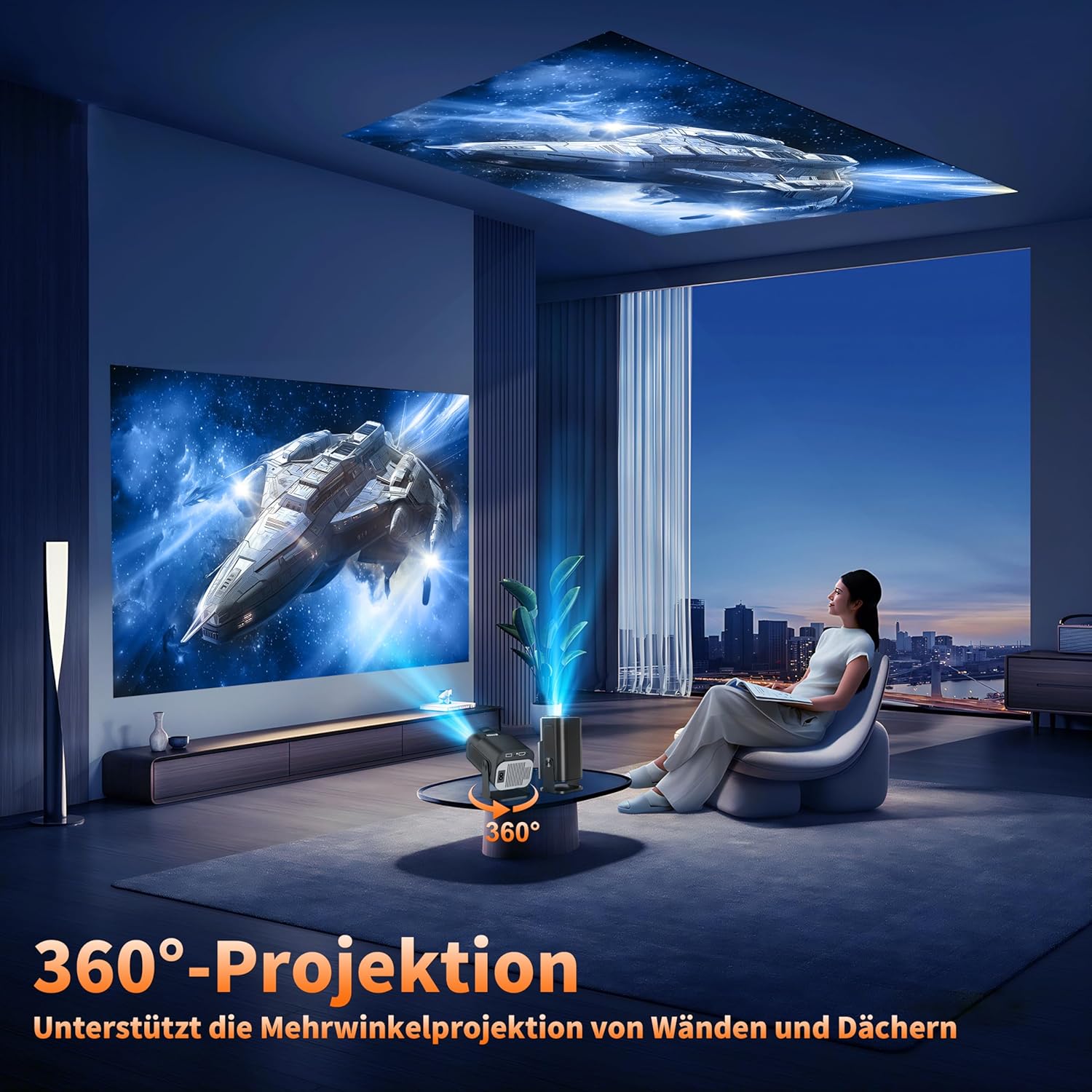 Проектор 4K проектор Full HD 1080P Android преносим проектор, мини проектор с WiFi 6 и Bluetooth 5.2 и 270° въртящ се проектор, интелигентен за PC/HDMI/USB, с мишка и дистанционно управление