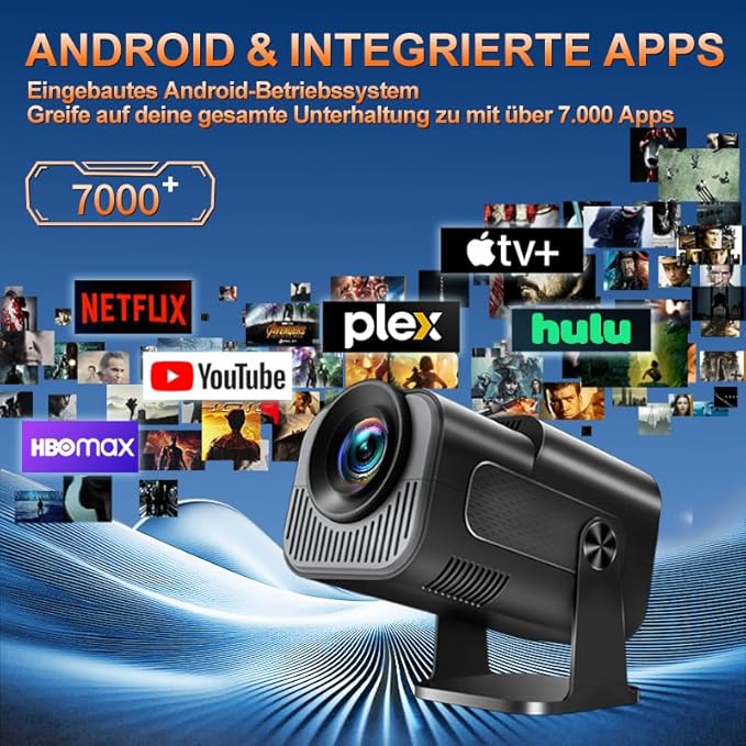• Проектор 4K видео: Преносимият проектор е оборудван с операционна система Android с вградени приложения, предварително инсталирана с богата екосистема от вградени приложения. Можете да изтеглите любимите си приложения, YouTube, Prime Video и безброй други приложения за незабавен достъп до огромна видео библиотека за уникално изживяване при гледане, идеално за забавление у дома, взаимодействие с игри и бизнес презентации.