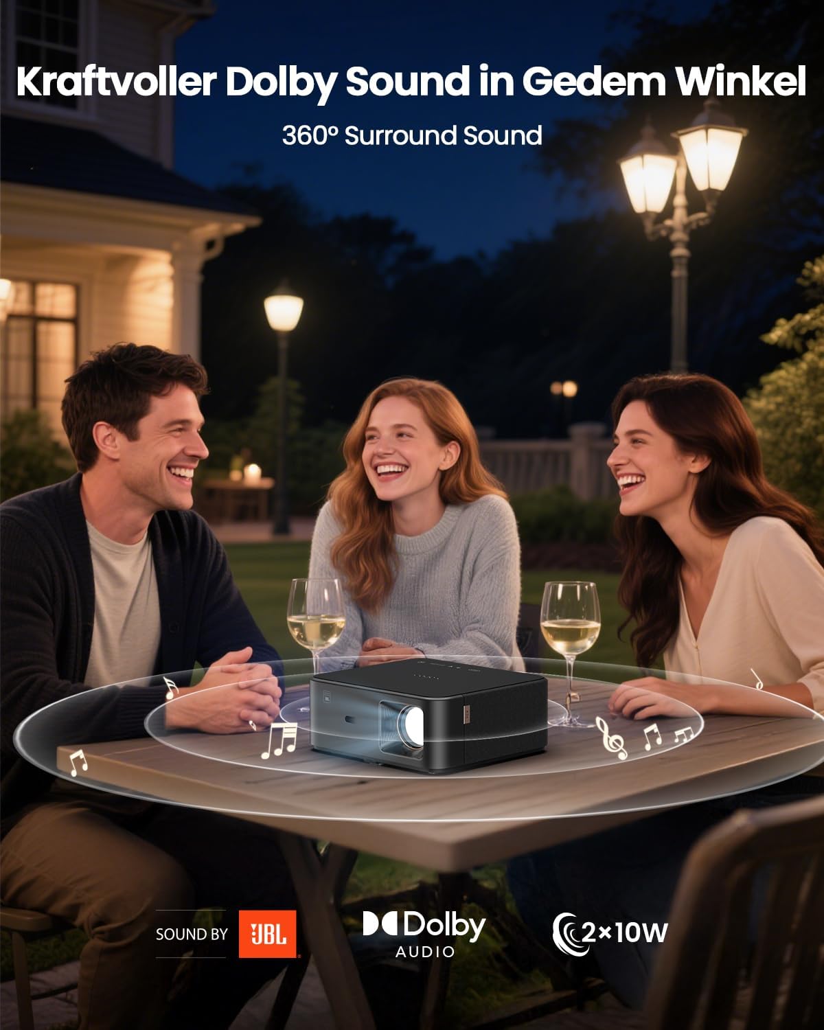 • Dolby аудио и 20 W високоговорител JBL 360° съраунд звук и двупосочен Bluetooth: Проекторът YABER K2s 4K има вградени двойни 10 W JBL стерео високоговорители, в комбинация с Dolby аудио, проекторът Yaber K2s постига наистина прозрачни високи честоти, ясни гласове и мощен бас. 4K UHD проекторът също има двупосочен Bluetooth и поддържа мобилни телефони за директно свързване към проектора чрез Bluetooth, за да реализира функцията на Bluetooth високоговорителя и да създаде динамично и завладяващо звуково изживяване.