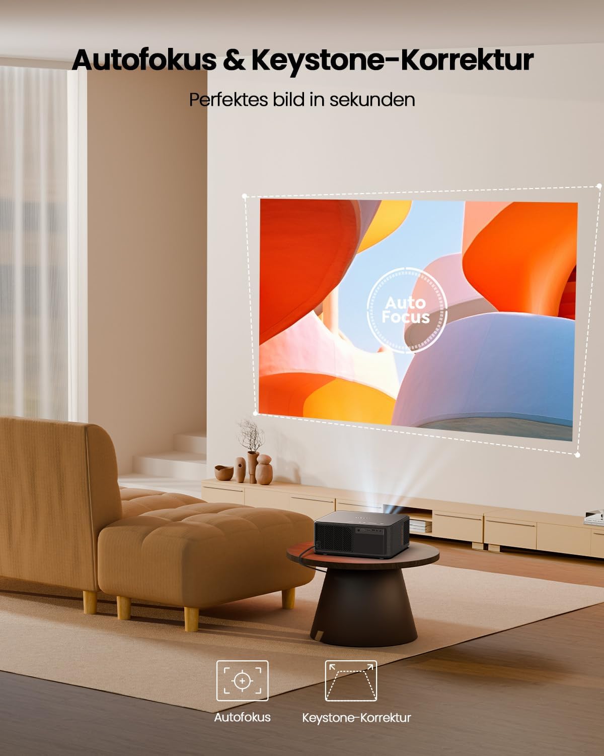 • Интелигентен ToF безсензорен автофокус и 6D автоматична корекция на трапецовидно изкривяване и тих режим <30 dB: YABER K2s проектор за домашно кино разполага с интелигентна ToF безсензорна технология за автофокус. Проекторът предоставя ясни изображения за по-малко от 1 секунда, което е пет пъти по-бързо от конвенционалните проектори на пазара. Чрез използване на фокуса на обектива и автоматичната корекция на трапецовидно изкривяване (±20 градуса), проекторът може по-добре да фокусира изображенията, за да покаже по-ясно изображение. В тих режим той произвежда 25% по-малко шум в сравнение с други марки и спестява 40% енергия, което позволява по-тихо и по-енергийно ефективно зрително изживяване.