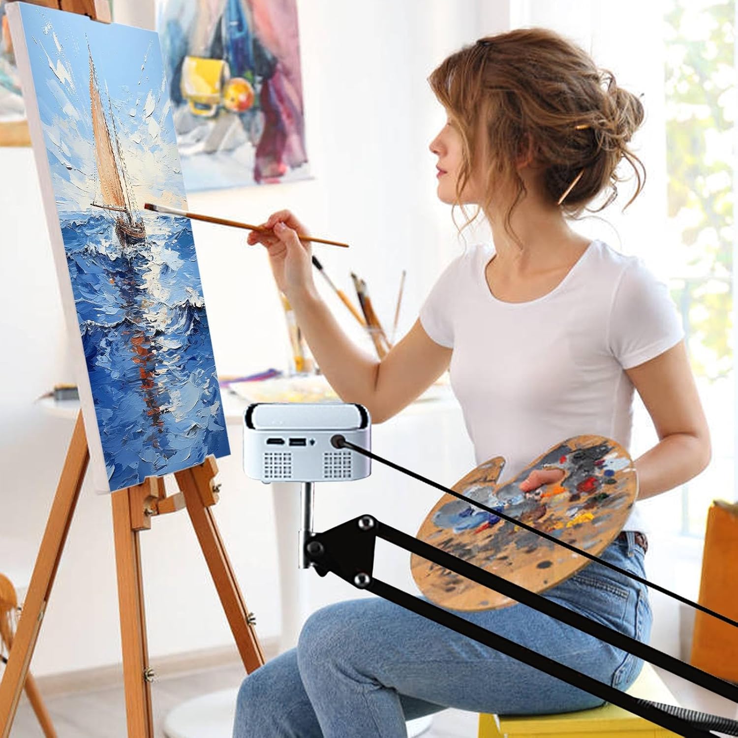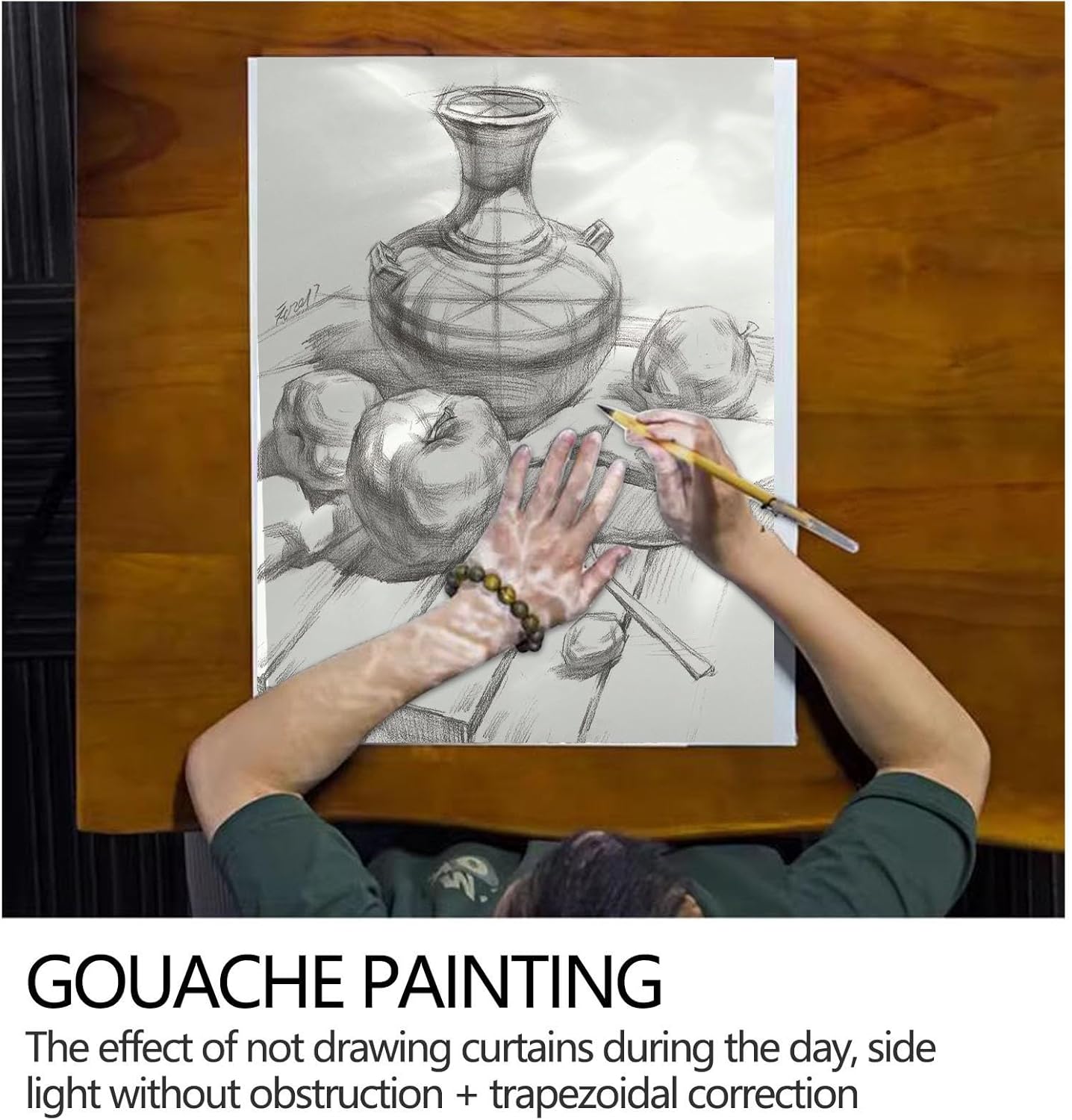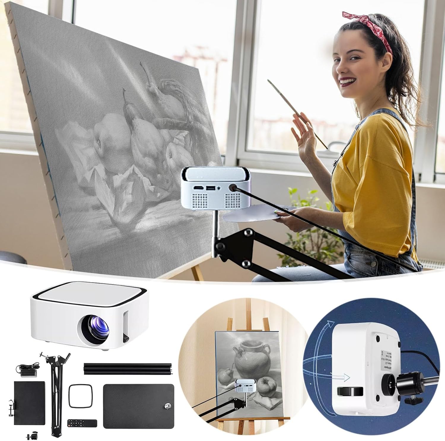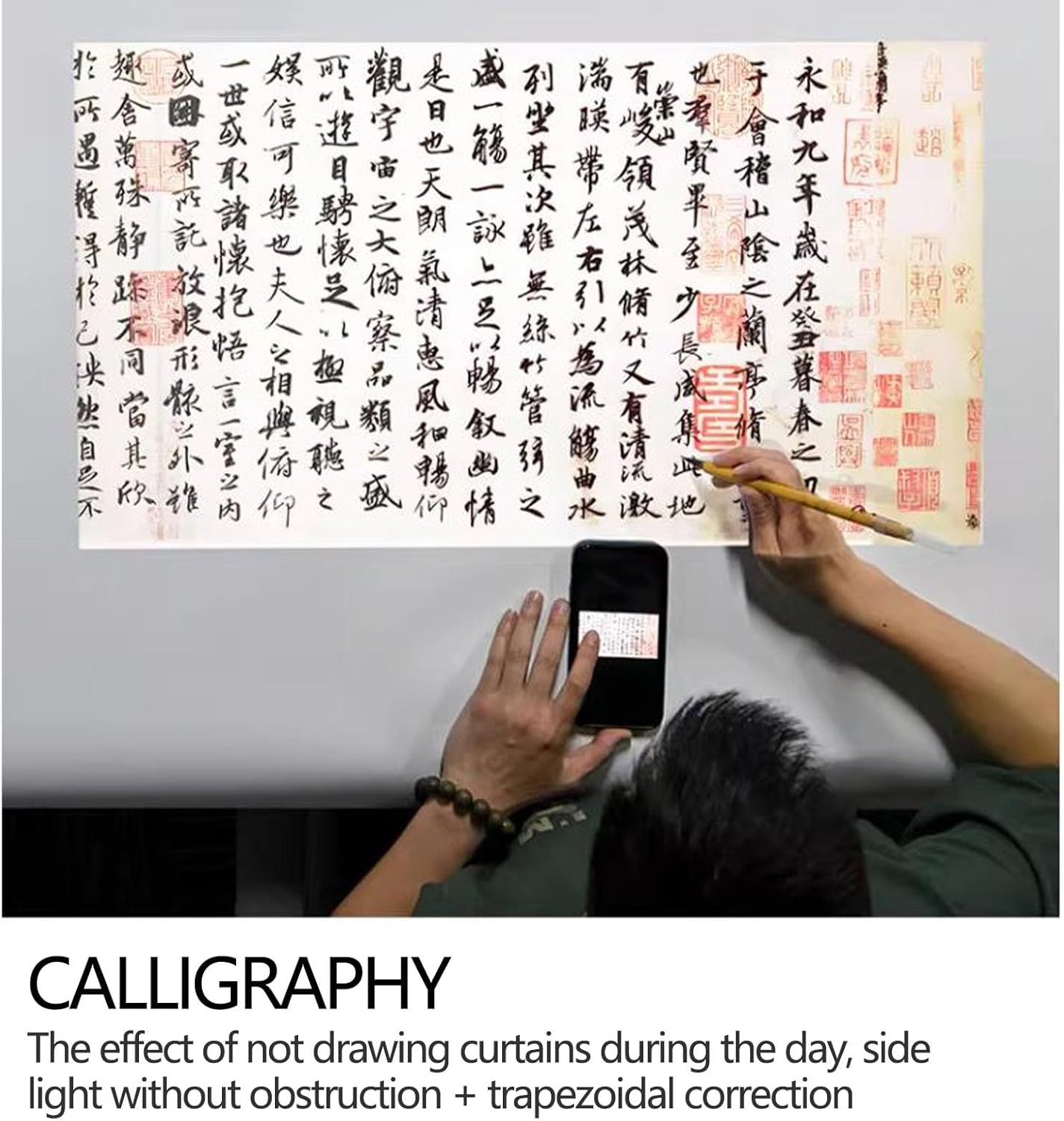 Избор за художници: Този проектор е проектиран специално за рисуване и е оптимизиран за различни приложения за рисуване и други. Той осигурява отлична точност на цветовете, което прави изображенията ви наистина реални. Проекторът е с малки размери, лесен за транспортиране и настройване и може да се използва върху различни сцени, като бюра, торти, стойки за маслени картини, стени и др., отговаряйки на вашите различни нужди.