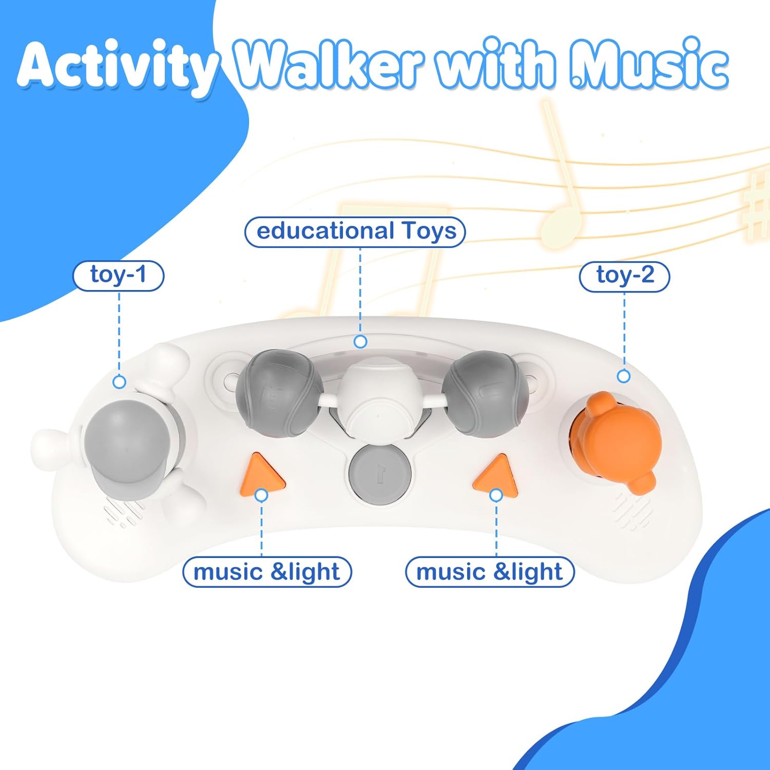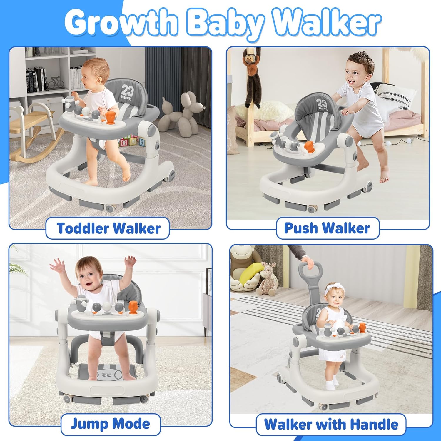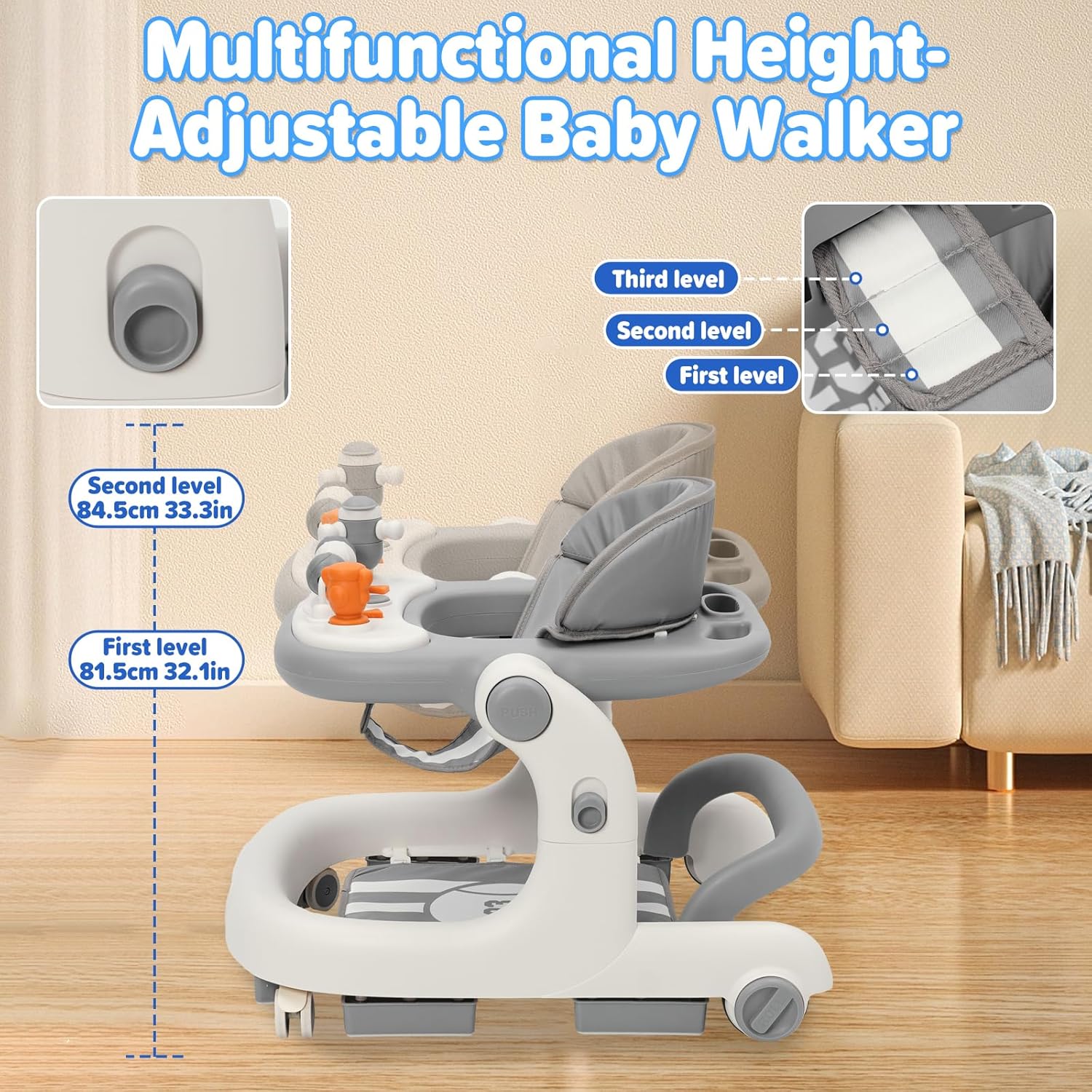 Проходилка за бебета Siairo 3 в 1 с регулируема височина и скорост, колела, светлина, музика, за деца на възраст от 6 до 18 месеца (сива)