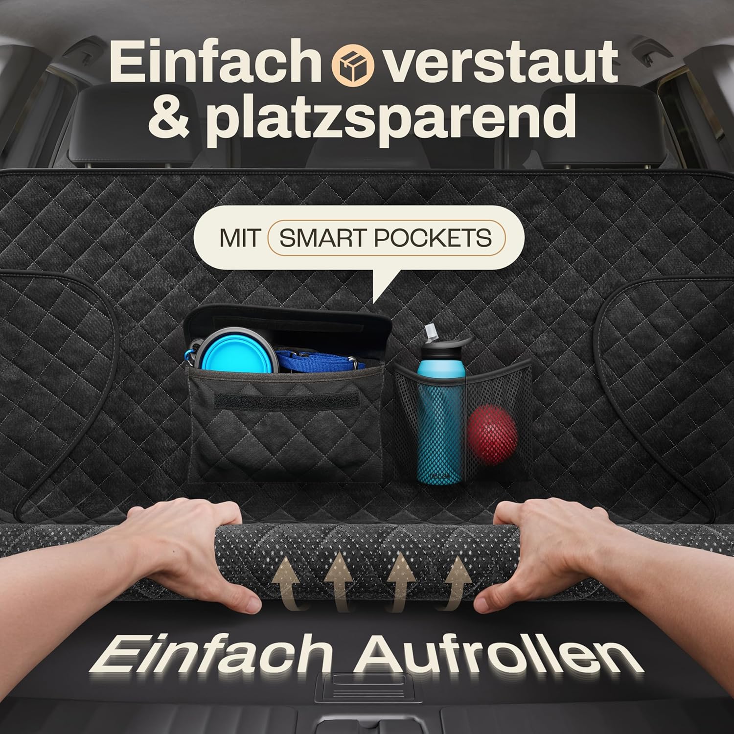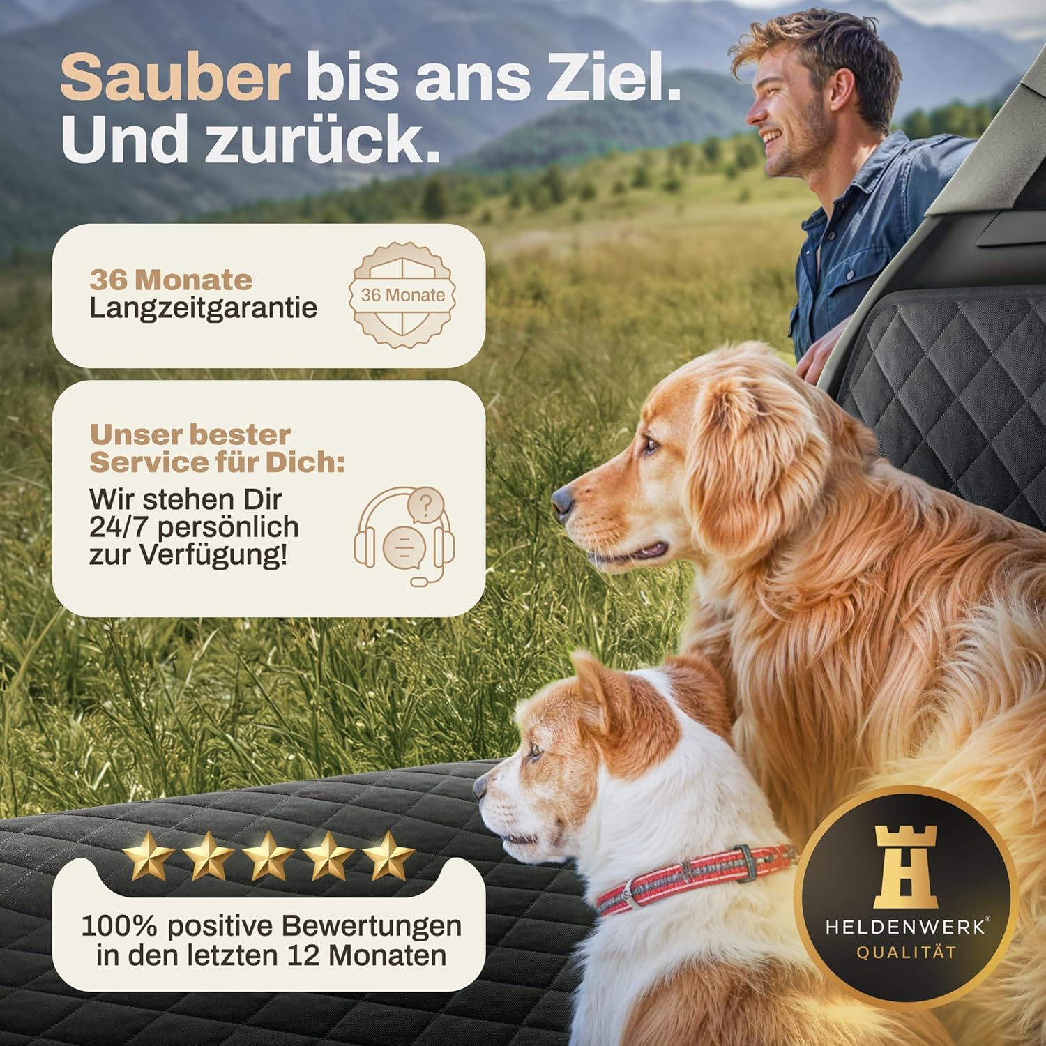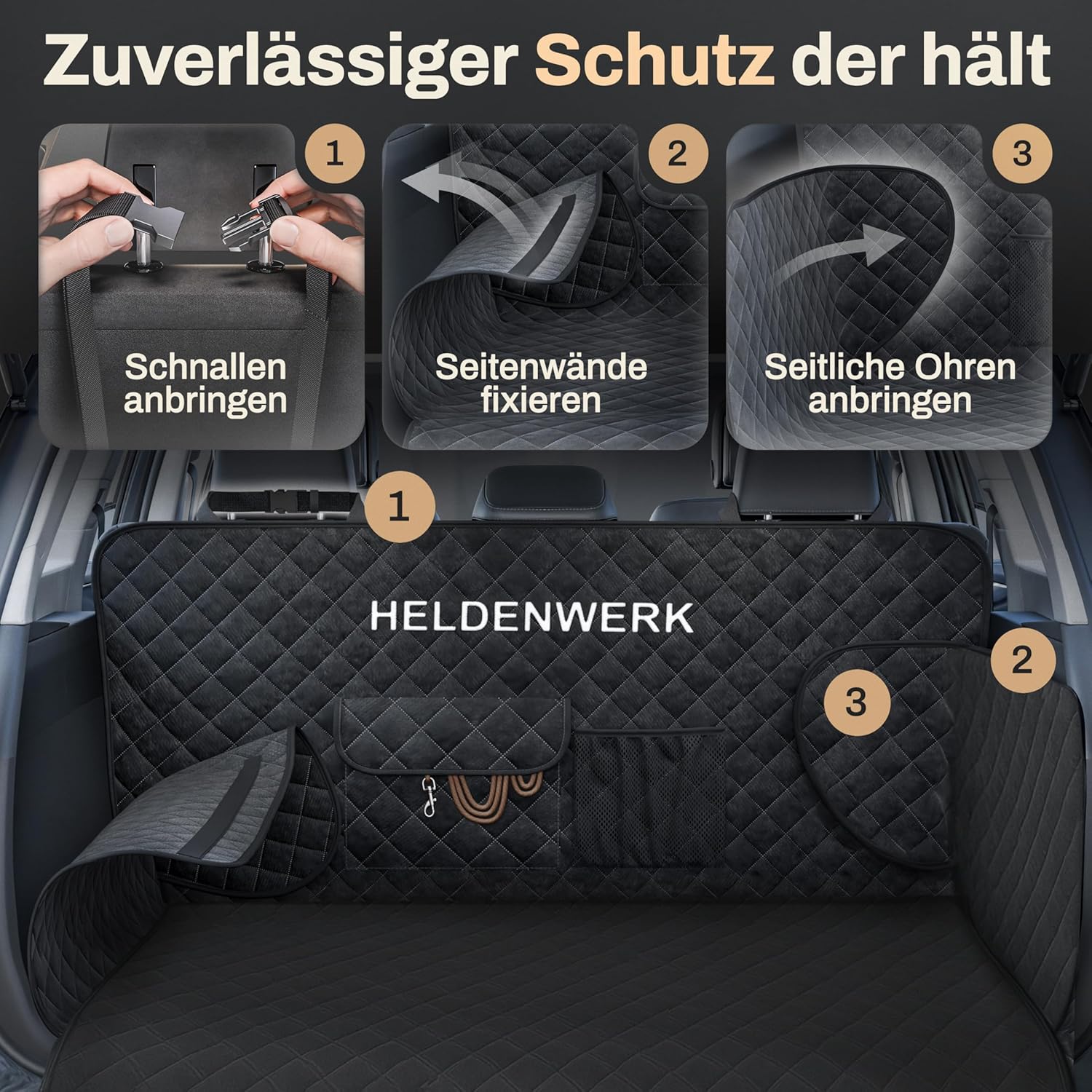 Протектор за багажник на кола HELDENWERK за кучета, капитониран със защита за страни и прагове на багажника I Одеяло за кучета, водоустойчиво и устойчиво на надраскване I Универсална постелка за защита на багажника на кучета