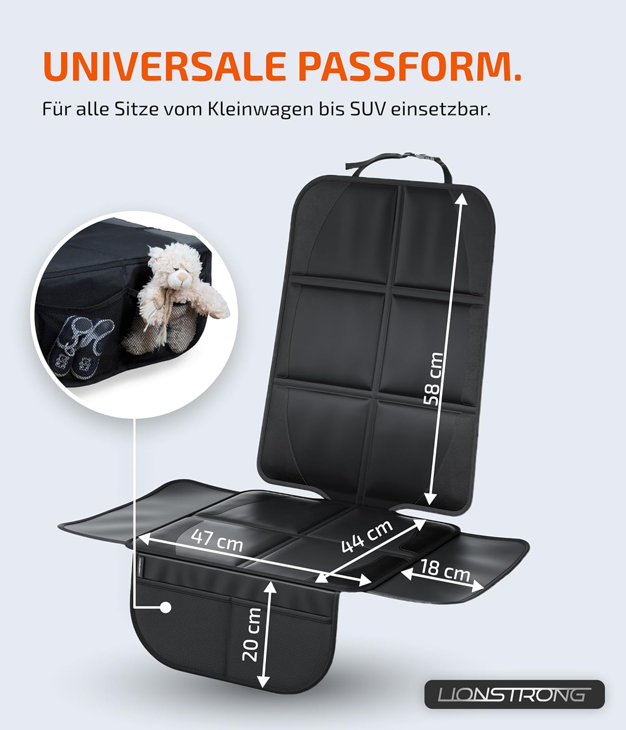 • Универсално прилягане: от малки автомобили до SUV-ове: Протекторът за седалка LIONSTRONG е съвместим с почти всички стандартни модели автомобили.