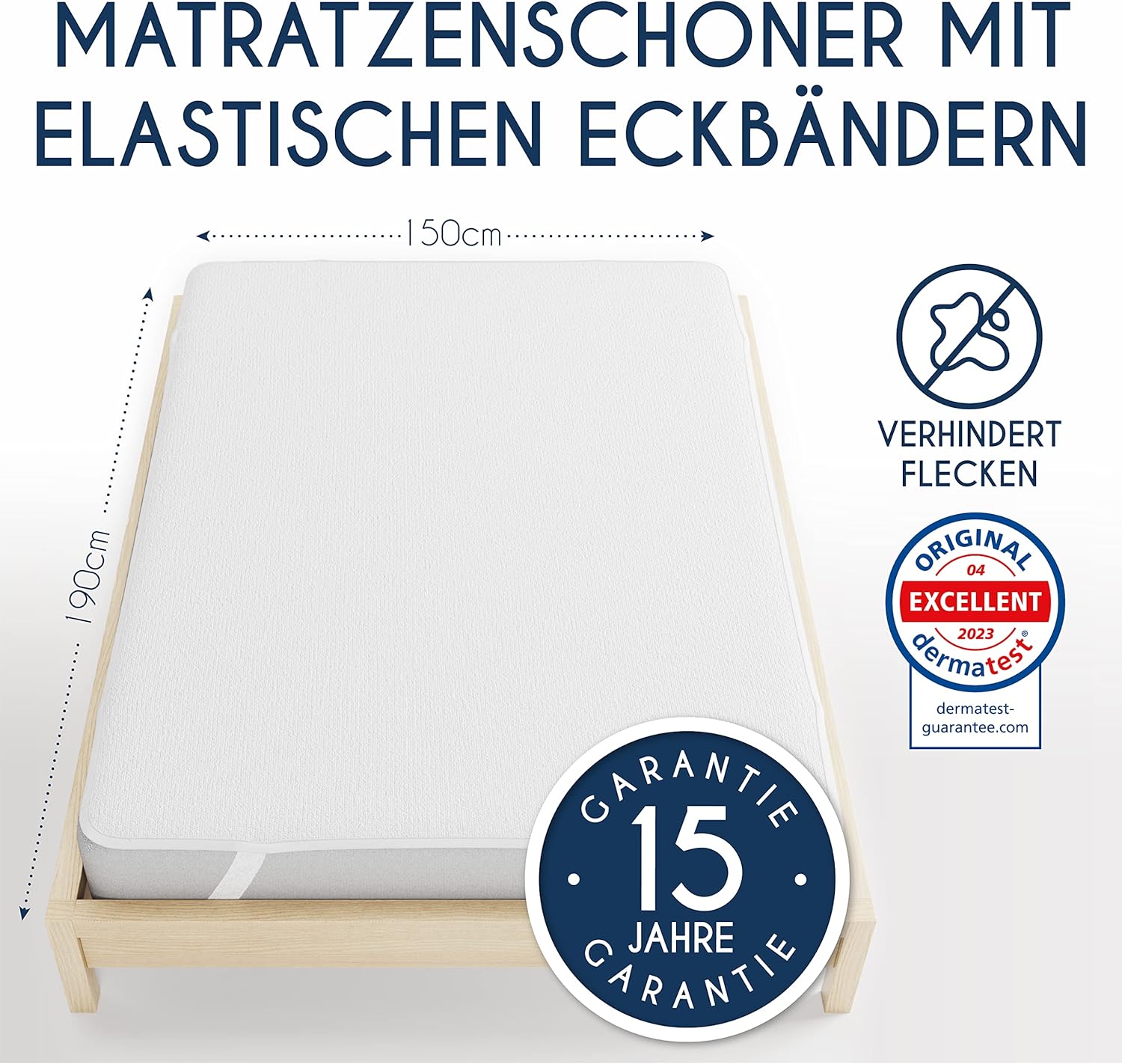 • Протектор за матрак 100% водоустойчив и дишащ: защитният калъф за матрак е водоустойчив и предлага защита от влага. Ефективно премахва прах, петна, пот, урина и други течности: Удължете живота на вашия матрак и спестете в дългосрочен план! 140 x 200 см се отнася за размера на матрака, размерите на защитния калъф може да варират с няколко сантиметра, за да паснат по-добре.