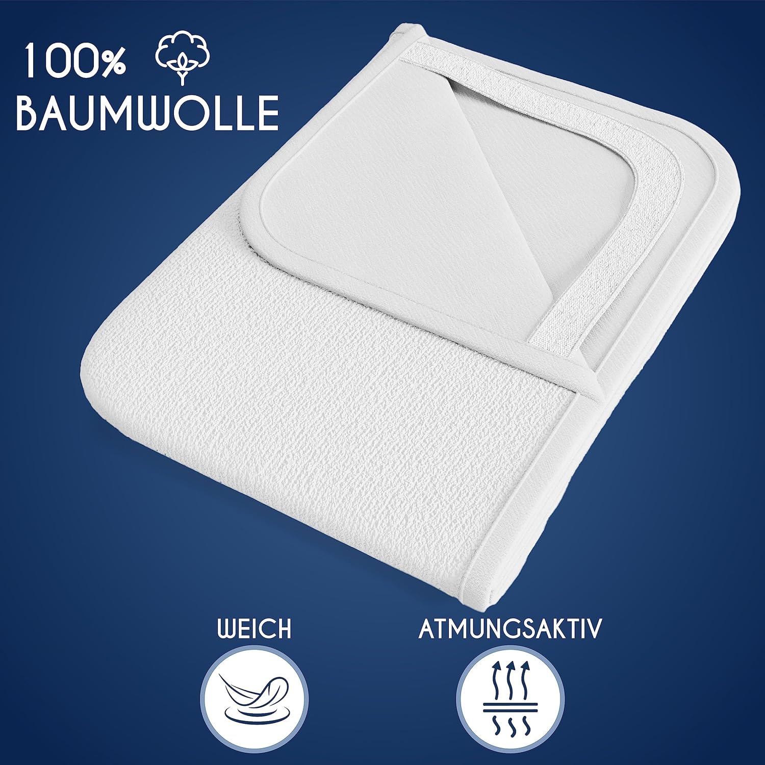 • Протектор за матрак 100% водоустойчив и дишащ: защитният калъф за матрак е водоустойчив и предлага защита от влага. Ефективно премахва прах, петна, пот, урина и други течности: Удължете живота на вашия матрак и спестете в дългосрочен план! 140 x 200 см се отнася за размера на матрака, размерите на защитния калъф може да варират с няколко сантиметра, за да паснат по-добре.