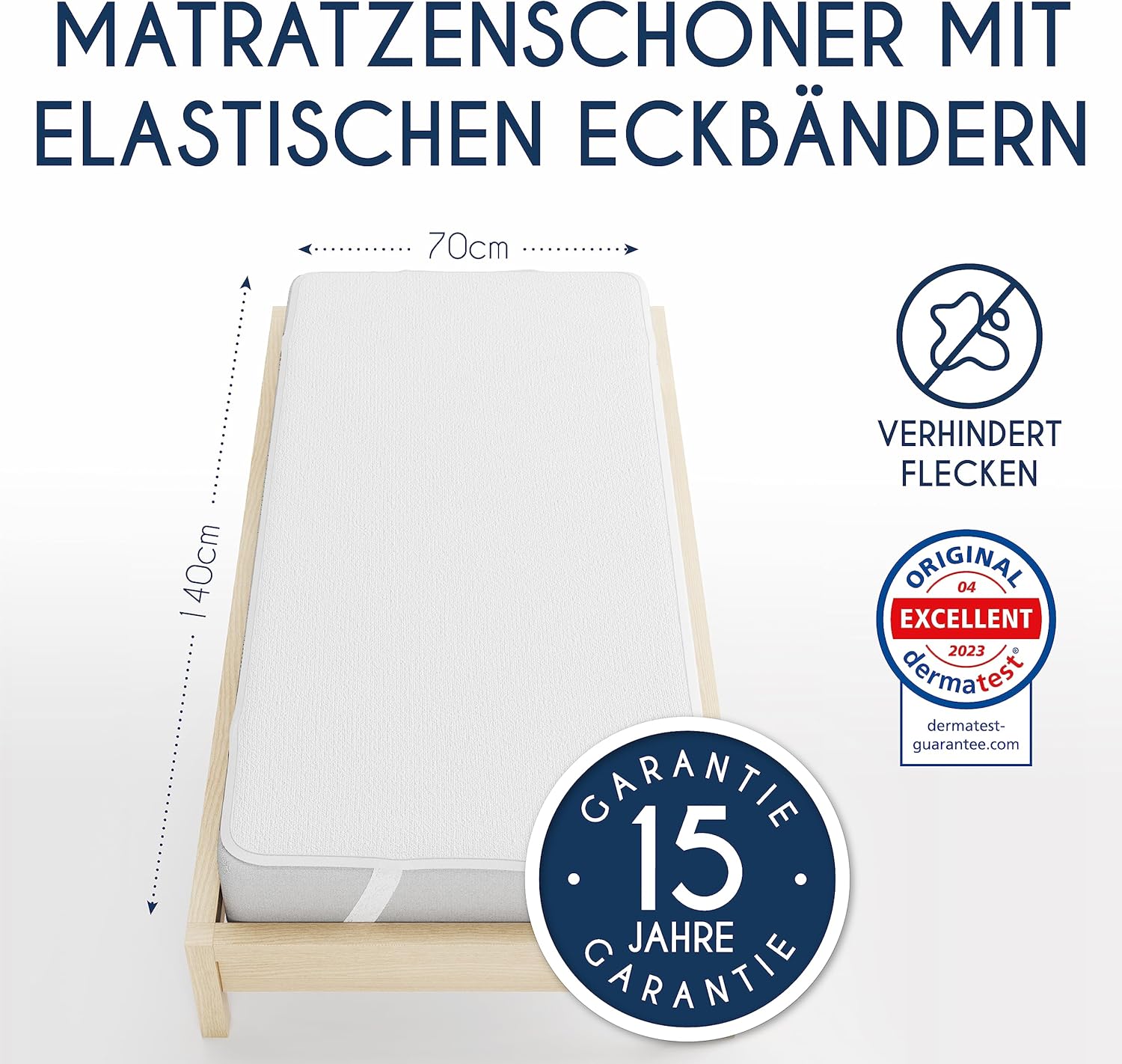• Протектор за матрак 100% водоустойчив и дишащ: защитният калъф за матрак е водоустойчив и предлага защита от влага. Ефективно премахва прах, петна, пот, урина и други течности: Удължете живота на вашия матрак и спестете в дългосрочен план! 140 x 200 см се отнася за размера на матрака, размерите на защитния калъф може да варират с няколко сантиметра, за да паснат по-добре.