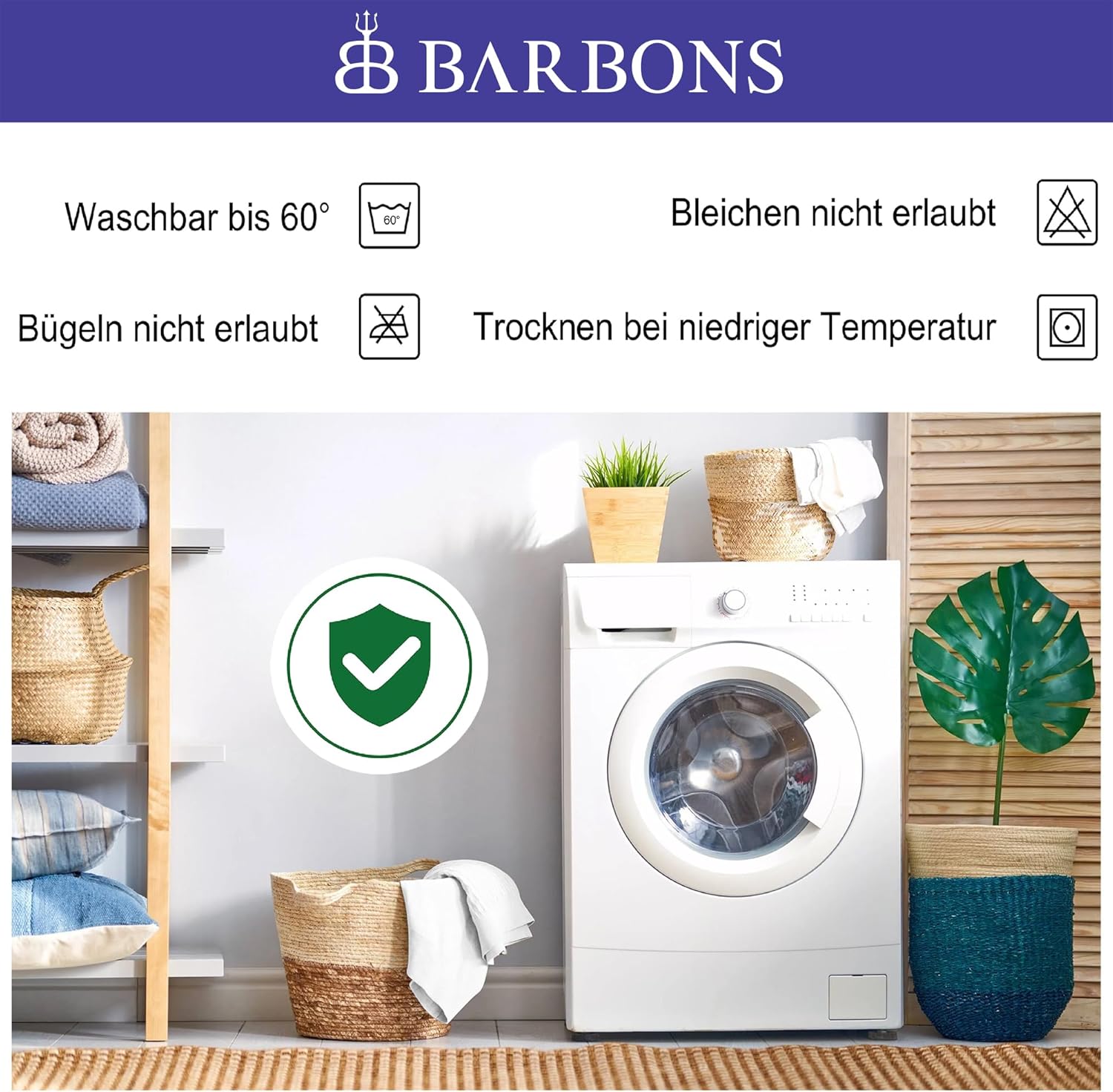 • Различни размери, от които да избирате: Протекторът за матрак Barbons се предлага в седем различни размера и в комплект от два: 60 ​​x 120 см, 70 x 140 см, 90 x 200 см, 100 x 200 см, 140 x 200 см, 160 x 200 см, 180 x 200 см