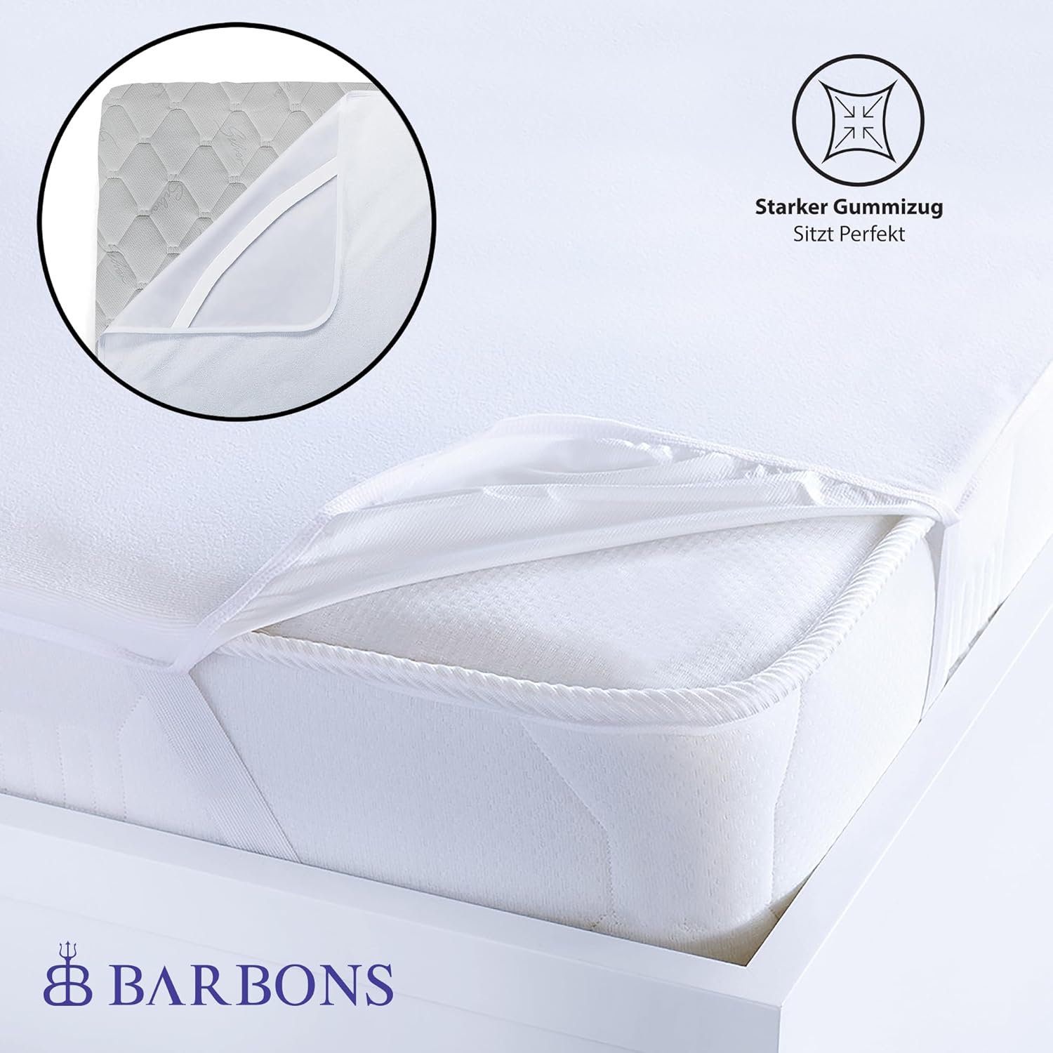 Протектор за матрак BARBONS 90 x 200 см - Сертифициран от Oeko-Tex водоустойчив топ матрак, памучен протектор за инконтиненция, който може да се пере, защита от влага, дишащ калъф за матрак - полиестер 90 x 200 см