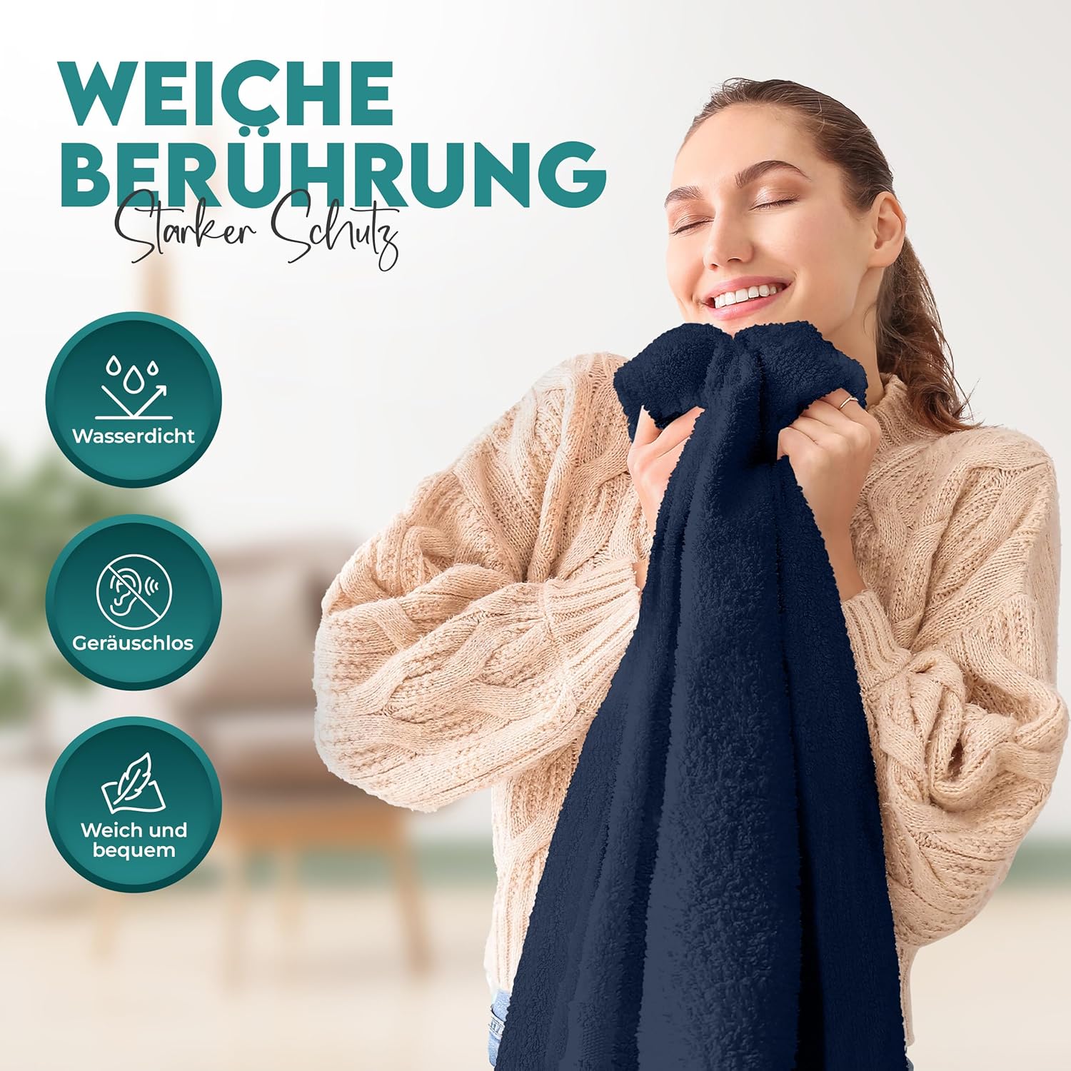 В допълнение, смес от памучен хавлиен плат поддържа мекото, уютно, безшумно и дишащо усещане на вашия матрак за спокоен сън.