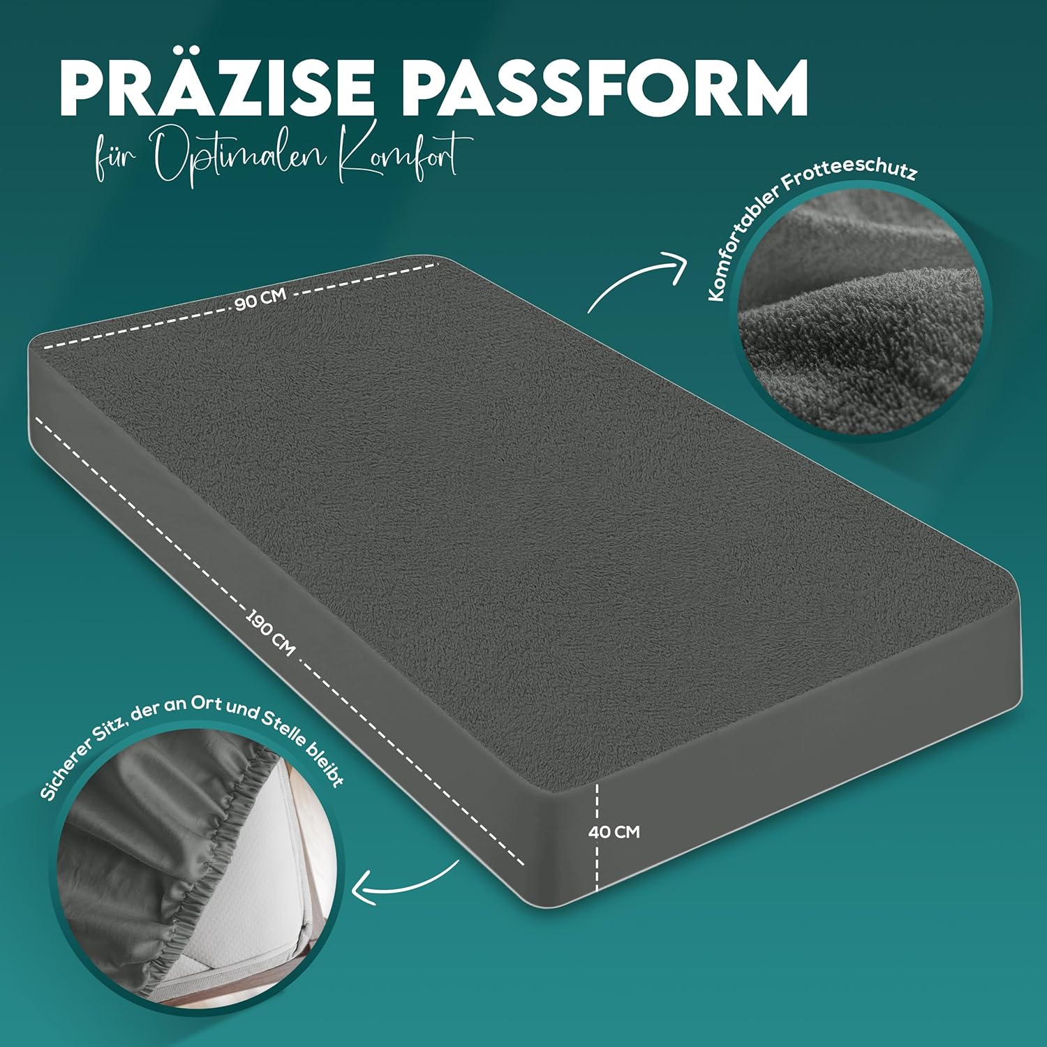 В допълнение, смес от памучен хавлиен плат поддържа мекото, уютно, безшумно и дишащо усещане на вашия матрак за спокоен сън.