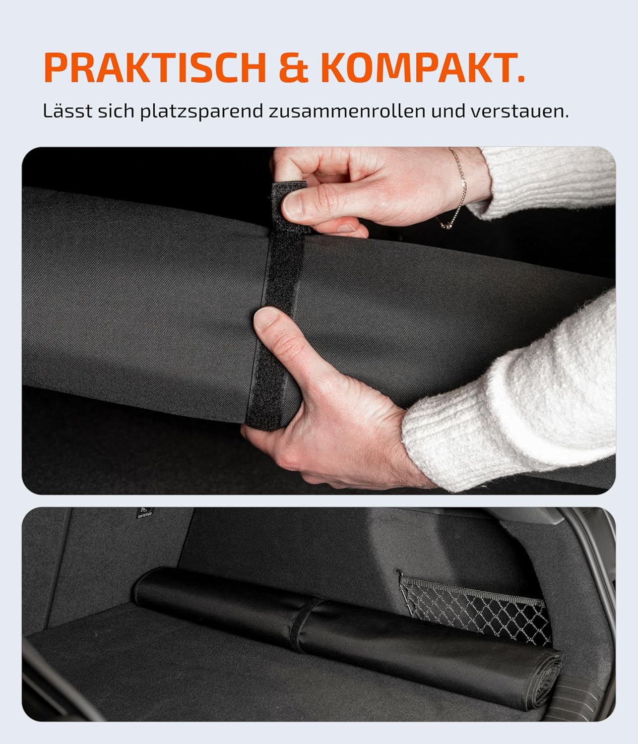 • ЛЕСНО ЗАКРЕПВАНЕ – Бърз и сигурен монтаж с велкро закопчалка за идеална защита на багажника на автомобила – практичен автомобилен аксесоар за всеки автомобил.