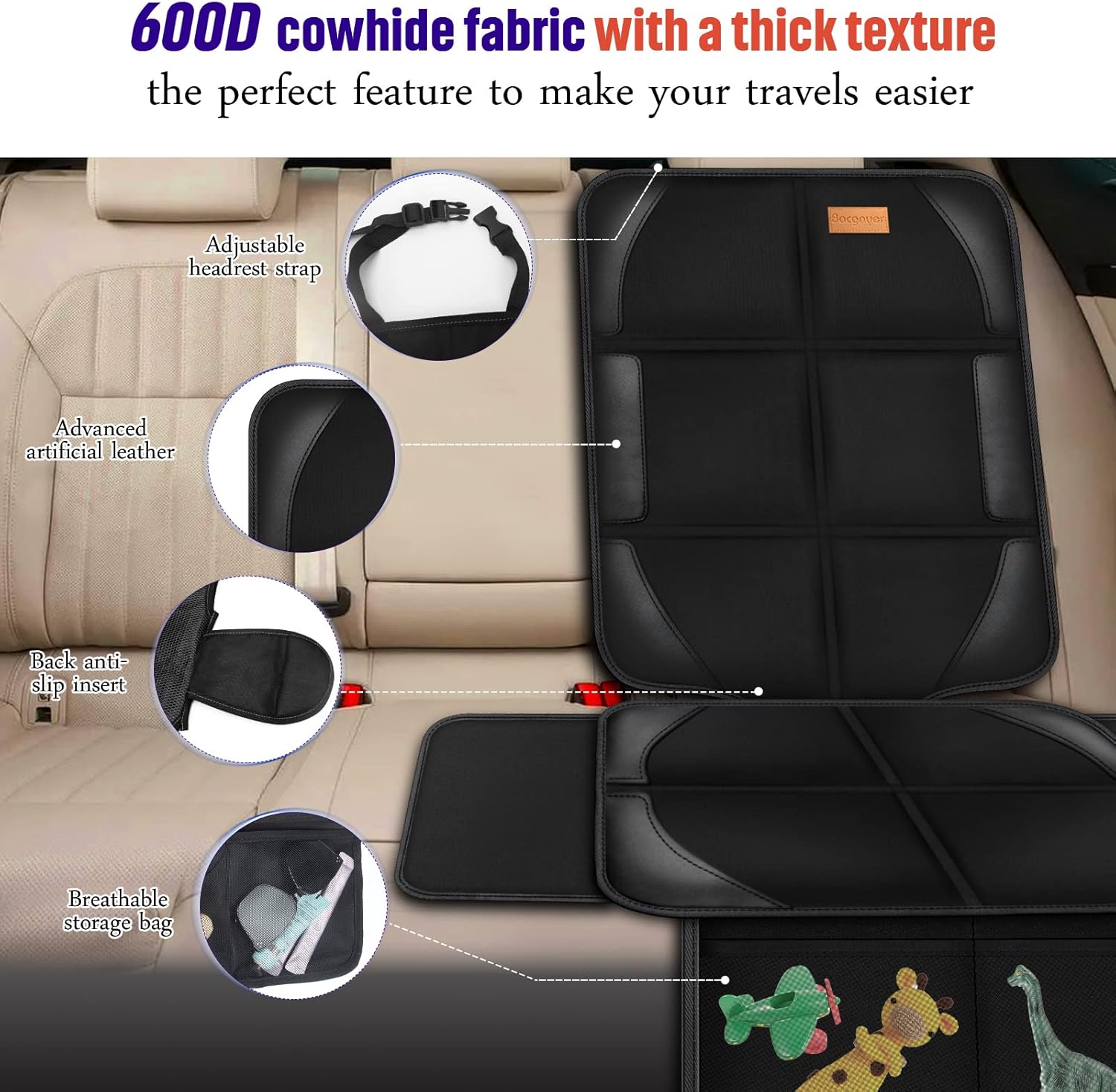 Протектор за столче за кола, пакет от 2 протектора за столче за кола, 600D, подложки за детско столче за кола, водоустойчиви, издръжливи, неплъзгаща се облегалка, защита за детско столче, подходящ за бебета, малки деца, деца