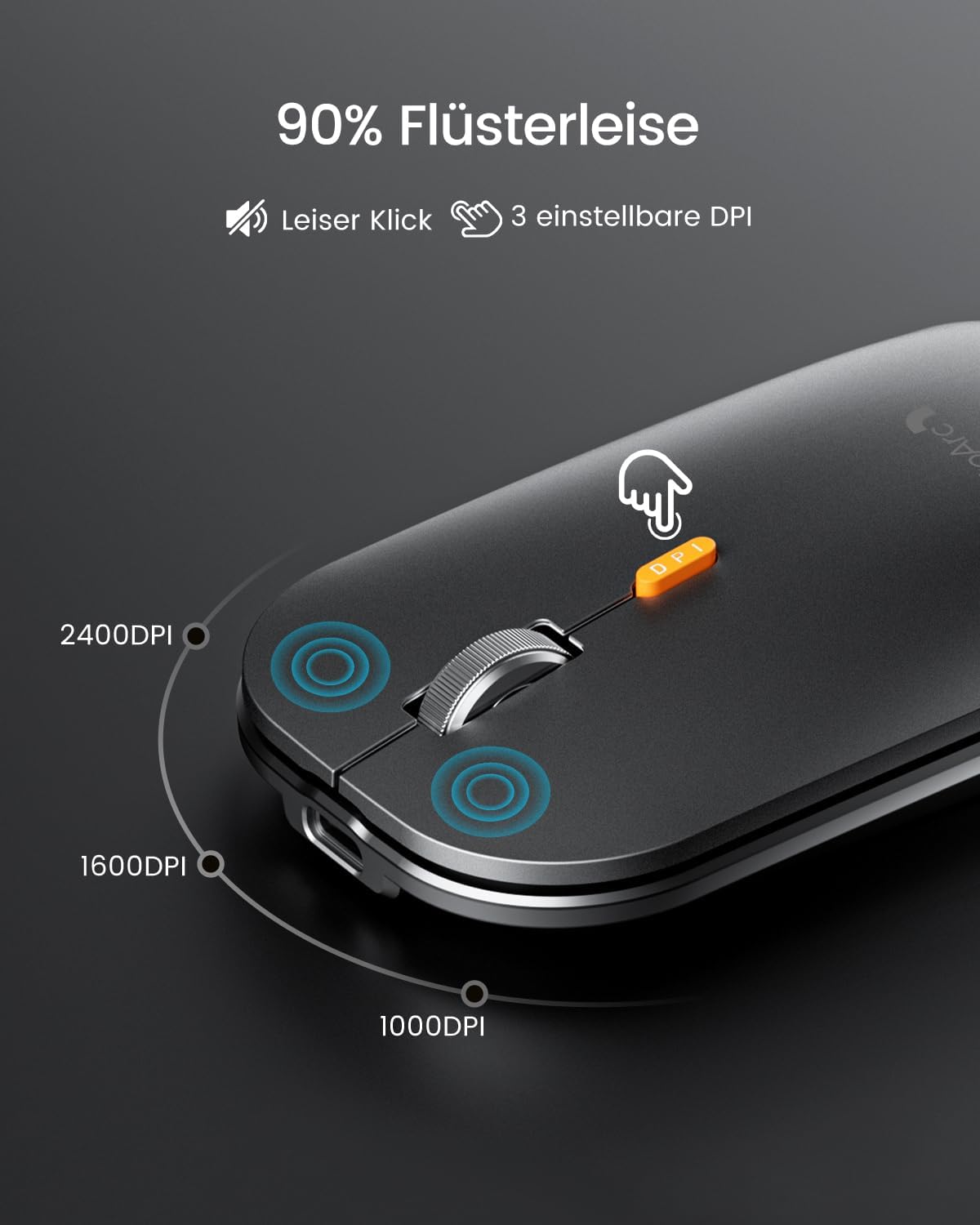• Чувствителни клавиши и тихо писане: Външната рамка на тази клавиатура е изработена от пластмаса, която е здрава, устойчива на деформация и издръжлива. Тази тиха клавиатура разполага с чувствителен ножичен превключвател за ефективно и тихо писане. Нископрофилният дизайн и меките клавиши осигуряват превъзходен комфорт за пръстите. Мишката разполага с три регулируеми нива на DPI (1000/1600/2400), което ви дава персонализирани опции за чувствителност.