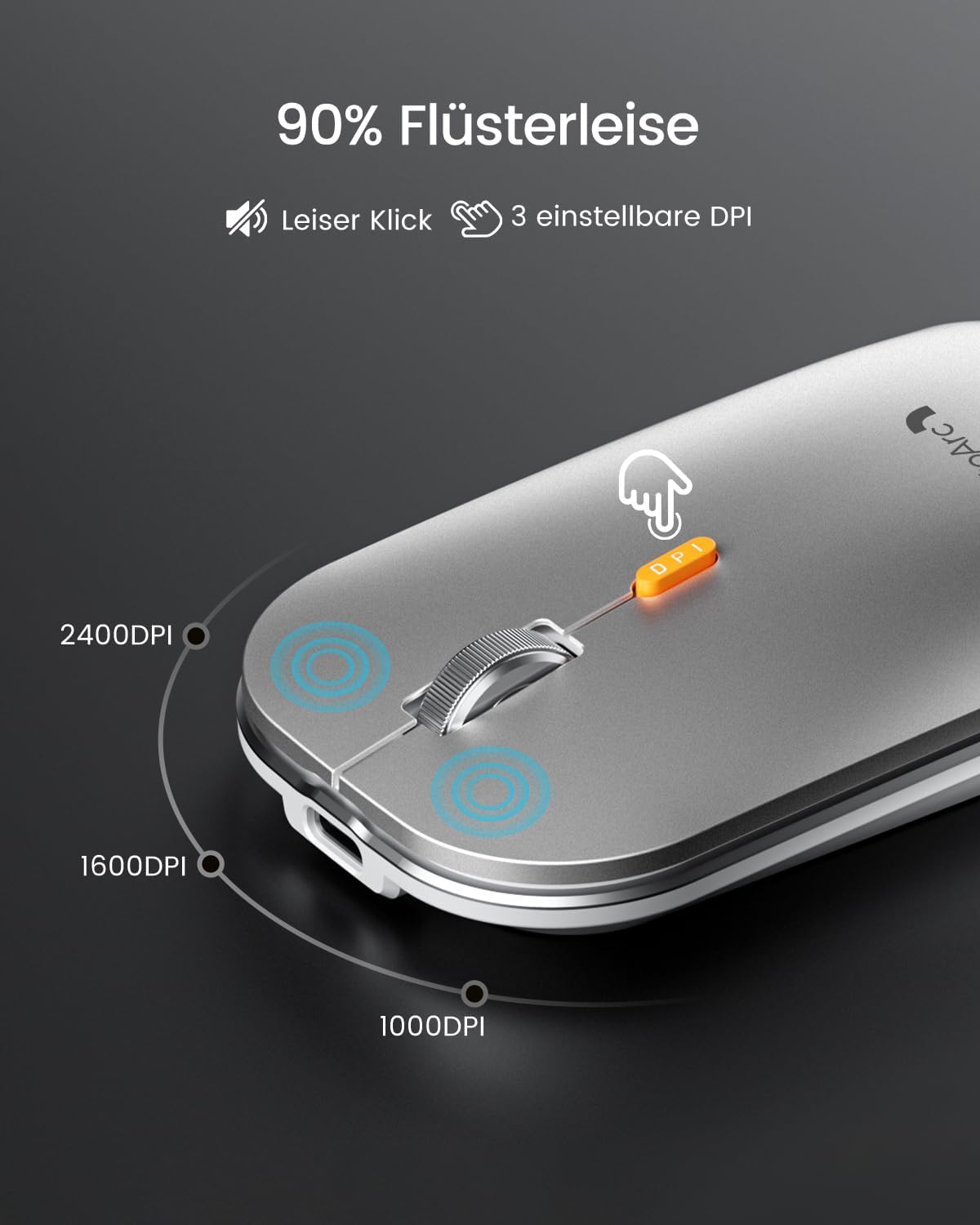• Чувствителни клавиши и тихо писане: Външната рамка на тази клавиатура е изработена от пластмаса, която е здрава, устойчива на деформация и издръжлива. Тази тиха клавиатура разполага с чувствителен ножичен превключвател за ефективно и тихо писане. Нископрофилният дизайн и меките клавиши осигуряват превъзходен комфорт за пръстите. Мишката разполага с три регулируеми нива на DPI (1000/1600/2400), което ви дава персонализирани опции за чувствителност.