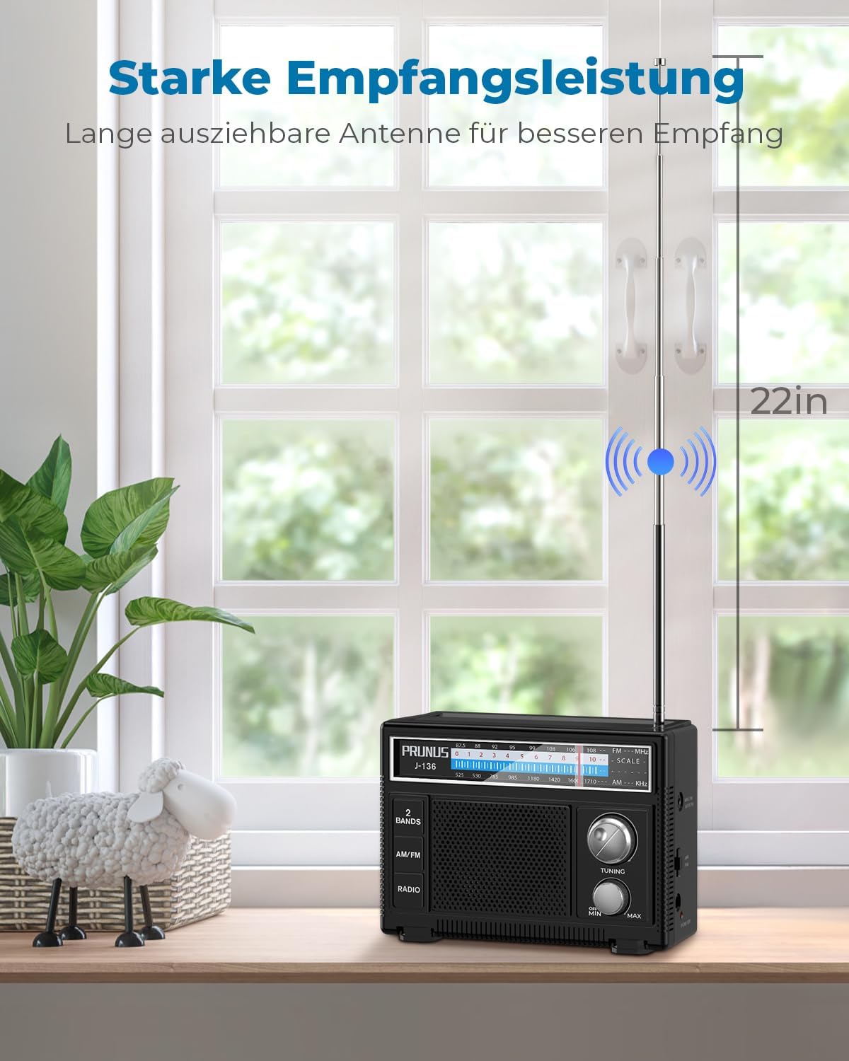 С телескопична антена с дължина 56 см и обхват 360 градуса, която е 4,5 пъти по-висока от самото радио, това FM/AM радио може да се похвали с отличен прием. То гарантира приятно слушане, без досадни смущения.
