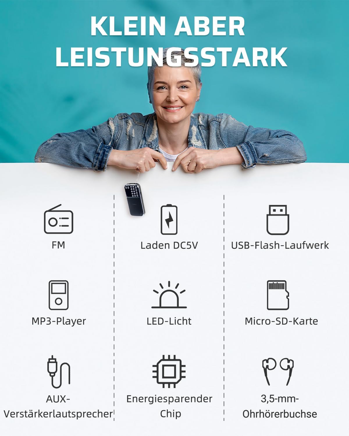 Connect a USB flash drive or micro SD card (under 32GB) with MP3 files and let yourself be inspired by the brilliant music experience. With the 3.5mm headphones, you have it all on your own.
