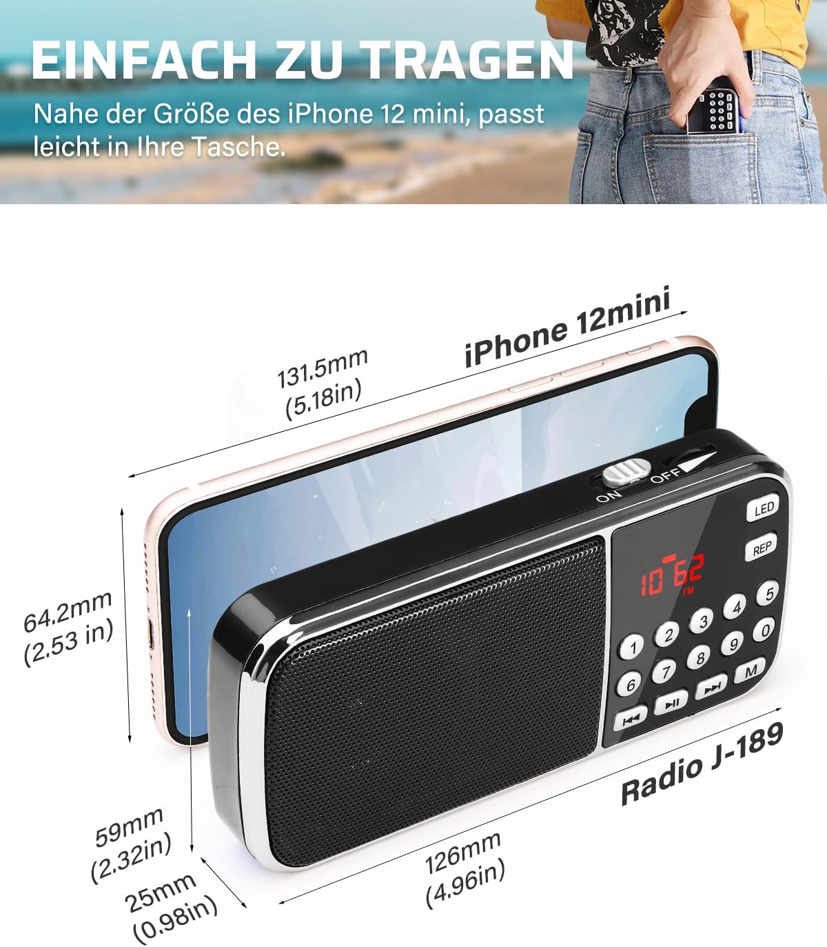 The antenna hiding behind the strap is a clever design in the radio market. The signal quality is not only weakened, but the weight of the radio is further reduced and the device becomes lighter and more portable.