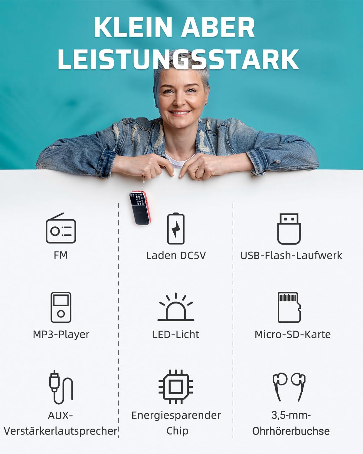 The antenna hiding behind the strap is a clever design in the radio market. The signal quality is not only weakened, but the weight of the radio is further reduced and the device becomes lighter and more portable.