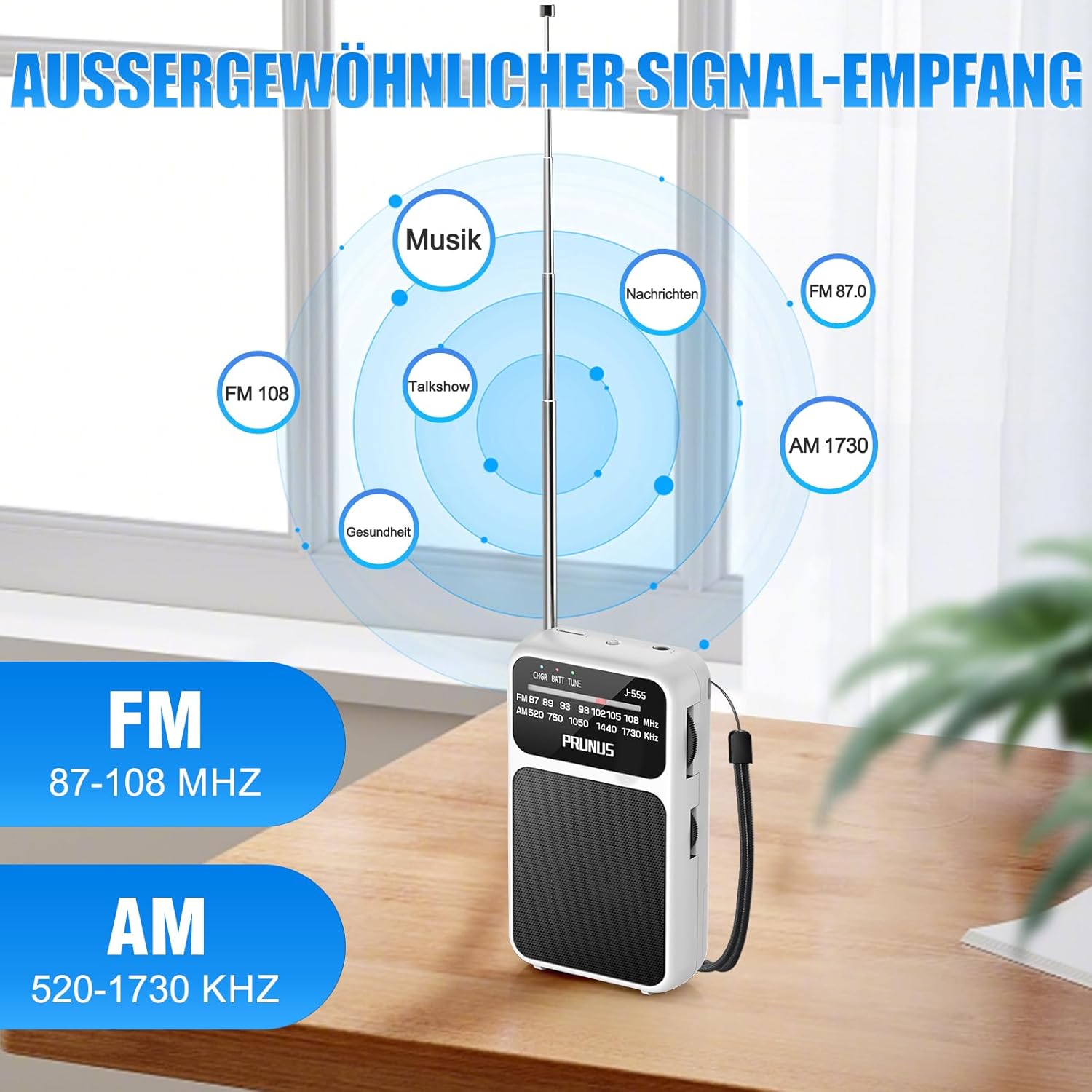 • Отлично качество на приемане: Този транзисторен радиоприемник има телескопична антена с дължина 19,5 см, която подобрява и стабилизира приема на сигнала. С вграден DSP чип, той осигурява отлична устойчивост на смущения на закрито и гарантира ясно качество на звука. Поддържа широк FM честотен диапазон (87-108MHz) и AM (520-1730KHz), така че можете лесно да получите достъп до музика, новини, токшоута, спорт и други местни предавания.