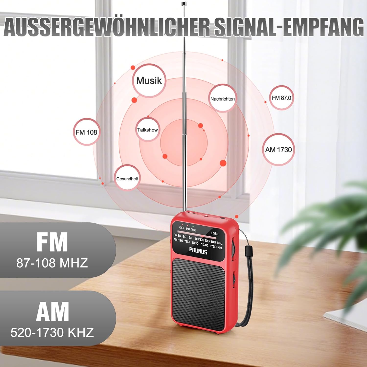 • Отлично качество на приемане: Този транзисторен радиоприемник има телескопична антена с дължина 19,5 см, която подобрява и стабилизира приема на сигнала. С вграден DSP чип, той осигурява отлична устойчивост на смущения на закрито и гарантира ясно качество на звука. Поддържа широк FM честотен диапазон (87-108MHz) и AM (520-1730KHz), така че можете лесно да получите достъп до музика, новини, токшоута, спорт и други местни предавания.
