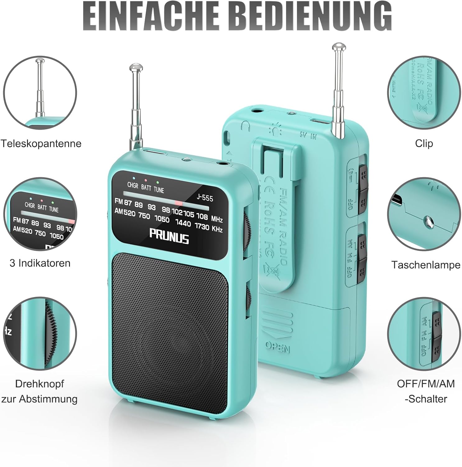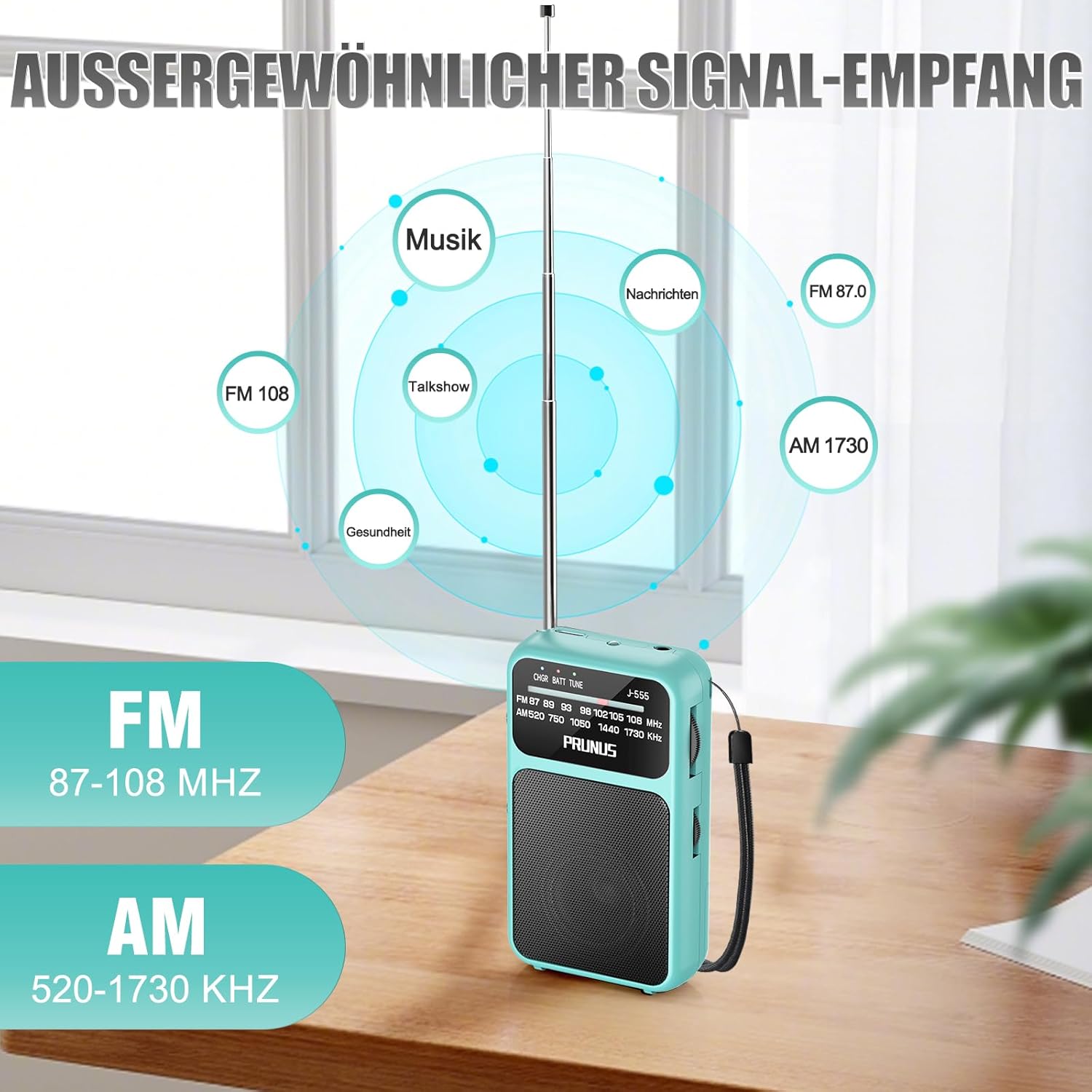 • Отлично качество на приемане: Този транзисторен радиоприемник има телескопична антена с дължина 19,5 см, която подобрява и стабилизира приема на сигнала. С вграден DSP чип, той осигурява отлична устойчивост на смущения на закрито и гарантира ясно качество на звука. Поддържа широк FM честотен диапазон (87-108MHz) и AM (520-1730KHz), така че можете лесно да получите достъп до музика, новини, токшоута, спорт и други местни предавания.