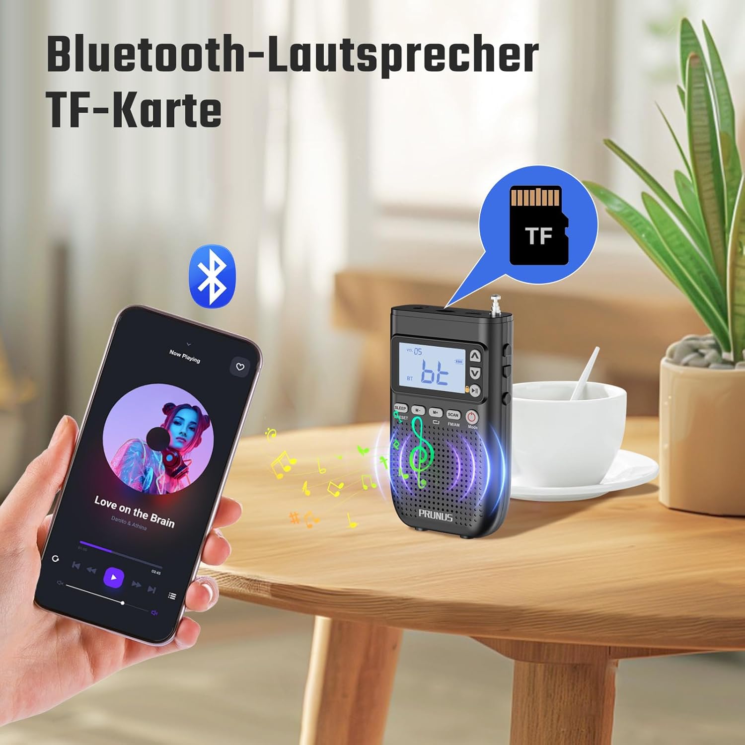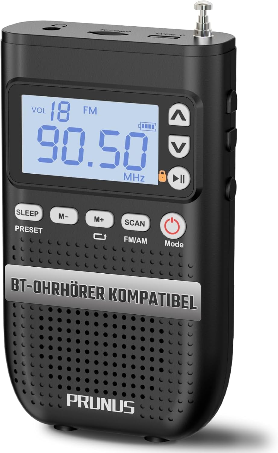 PRUNUS J-618 AM FM мини радио с Bluetooth слушалки, свързано цифрово радио, малко, поддържа ръчно запаметяване на станции, таймер за заспиване, джобно радио с батерия 2000 mAh, SD карта/Bluetooth високоговорител