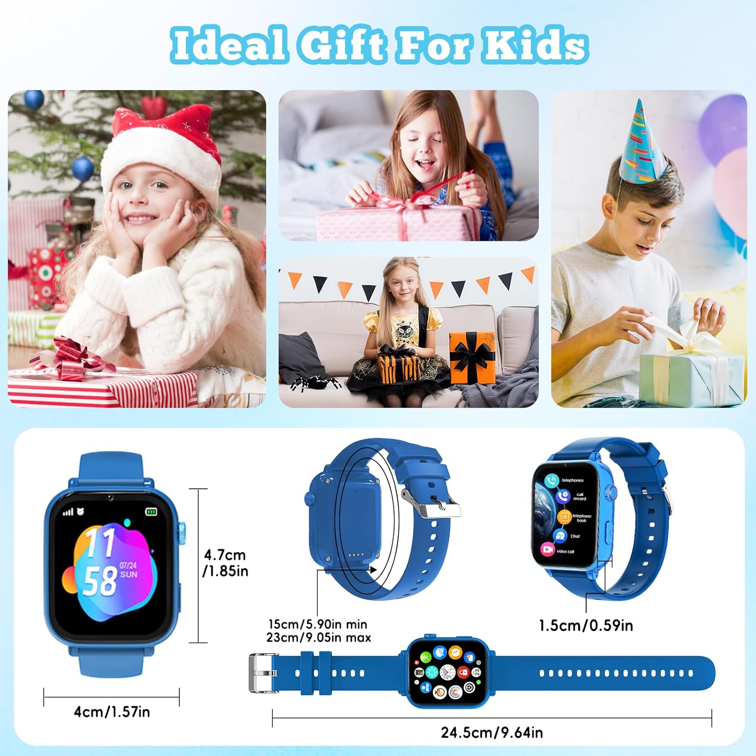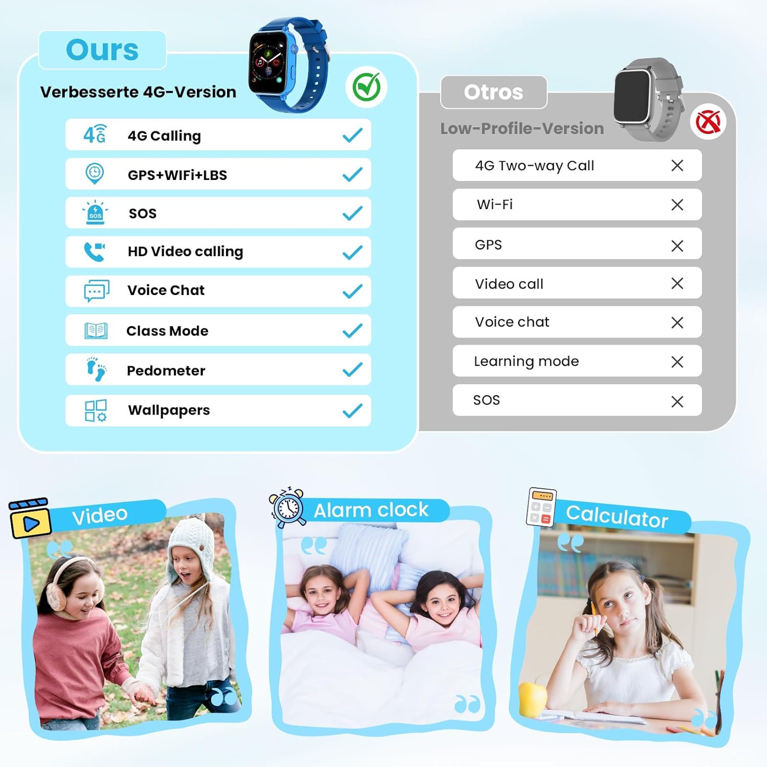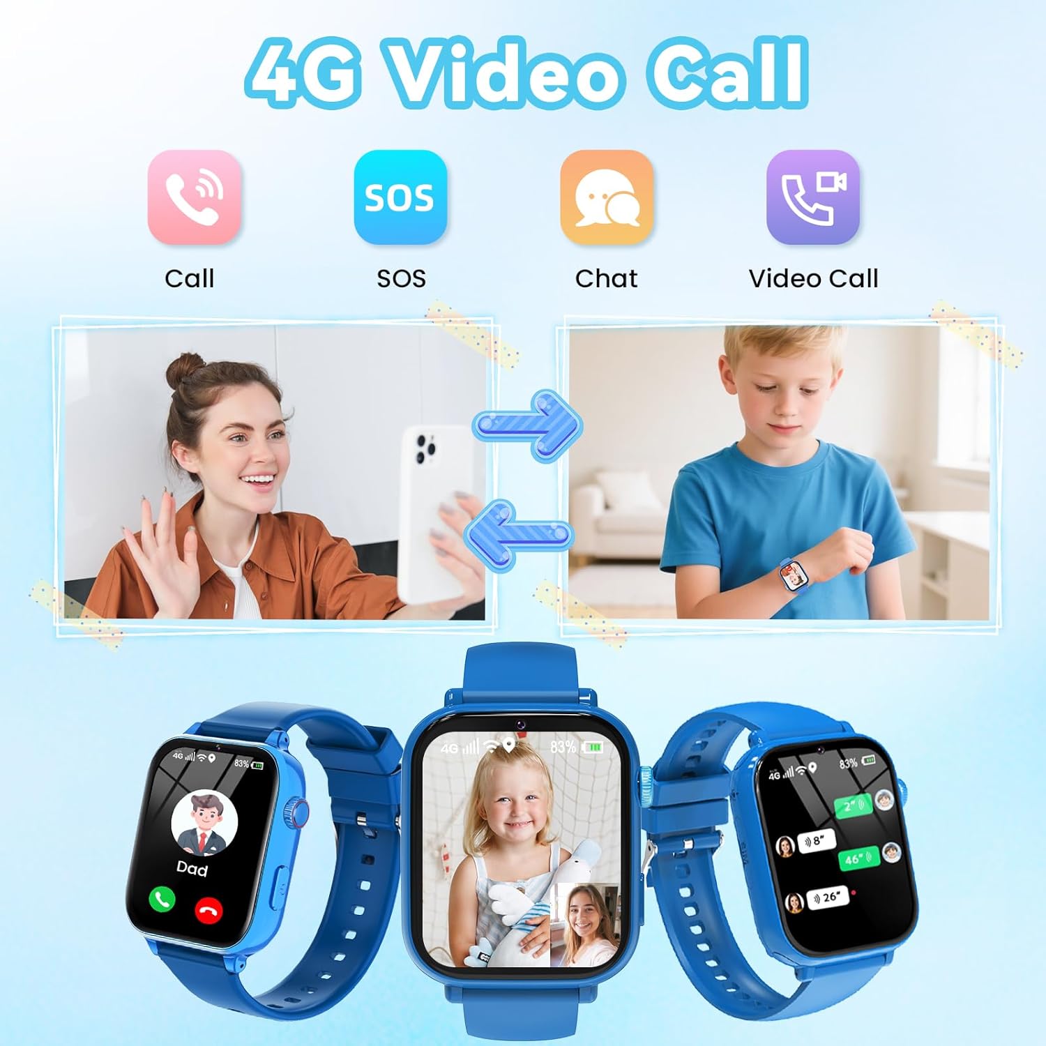 • Детски смарт часовник с GPS и 4G разговори: Този смарт часовник за деца е оборудван с GPS, видео разговори, гласов чат, SOS, режим на клас, SMS, WiFi, камера, крачкомер, будилник, хронометър, игри и други функции и е перфектен подарък за момчета и момичета 4-12 години за рожден ден, празници, фестивали, Великден, Ден на благодарността и Коледа.