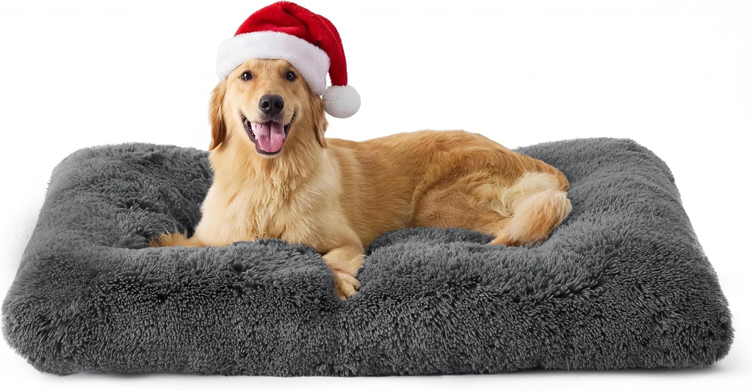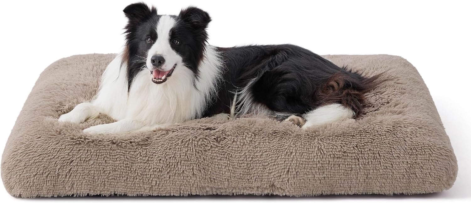 Пухкаво кучешко легло BEDSURE за големи кучета - 104 x 69 x 8 см, перещо се легло за големи кучета, неплъзгаща се долна страна, плюшена възглавница за кучета, кафяво