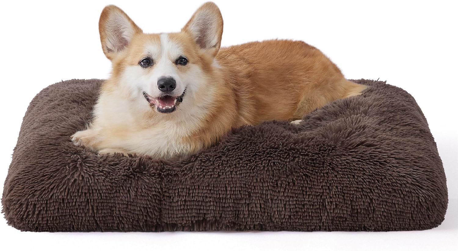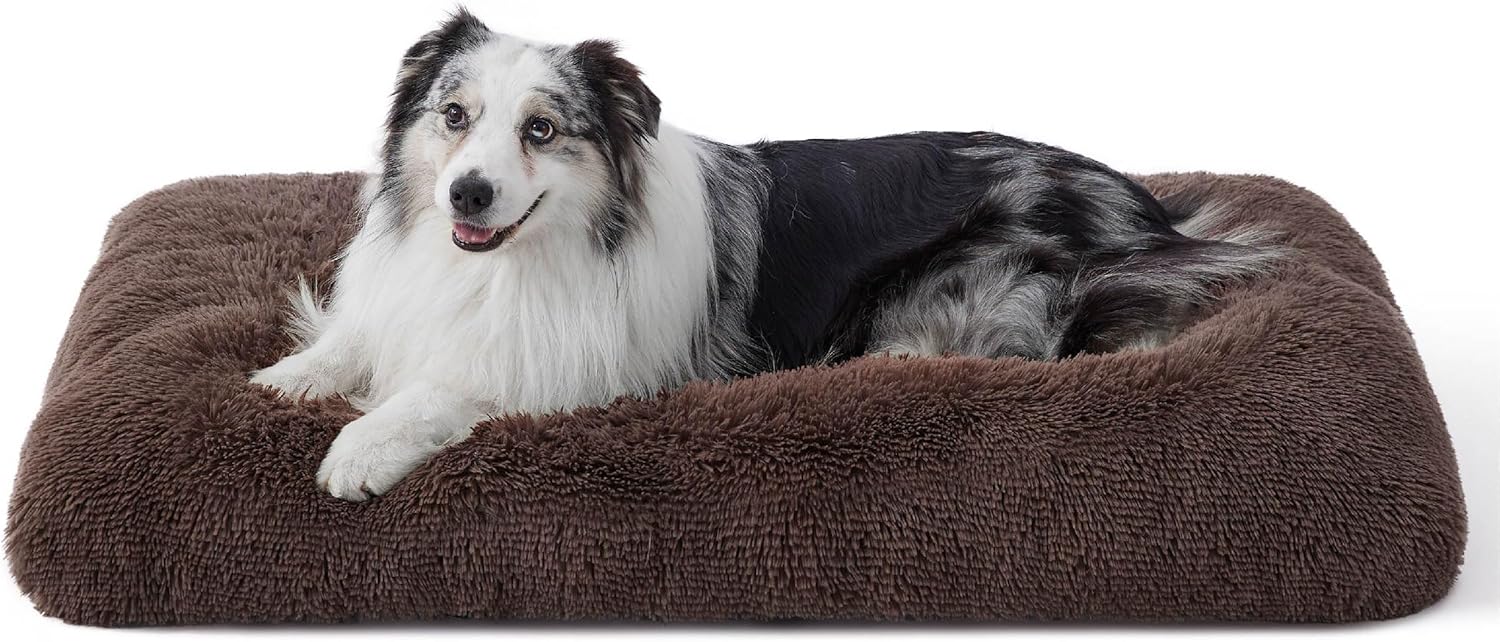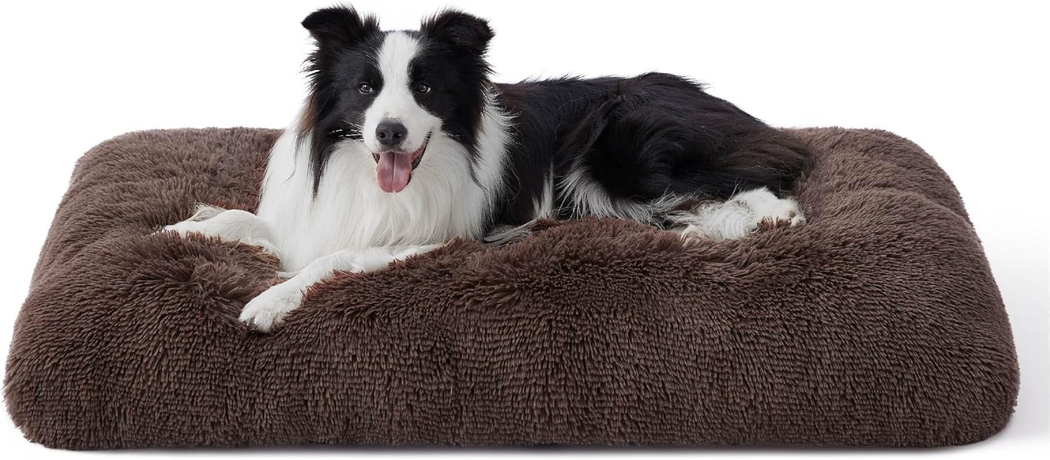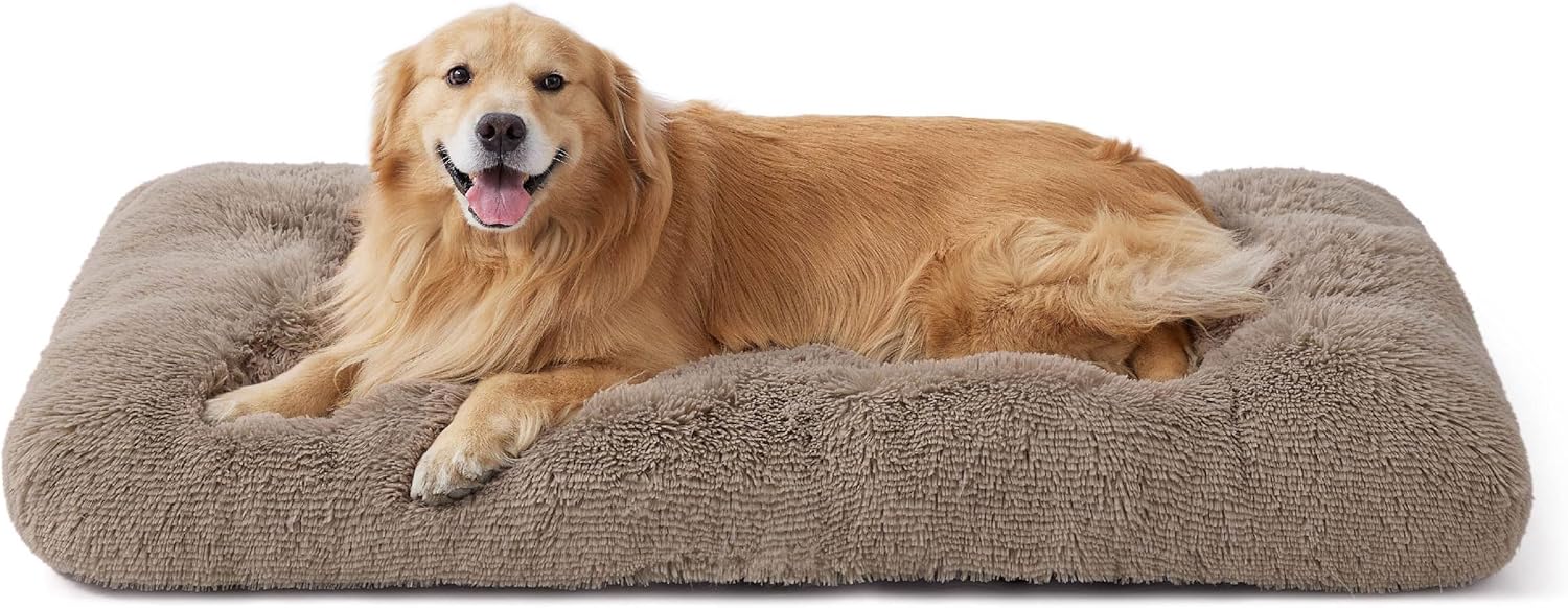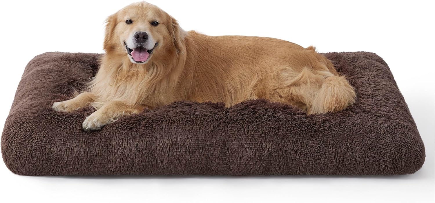 Пухкаво кучешко легло BEDSURE за големи кучета - 119 x 74 x 8 см, перещо се легло за много големи кучета, неплъзгаща се долна страна, плюшена възглавница за кучета, кафяво
