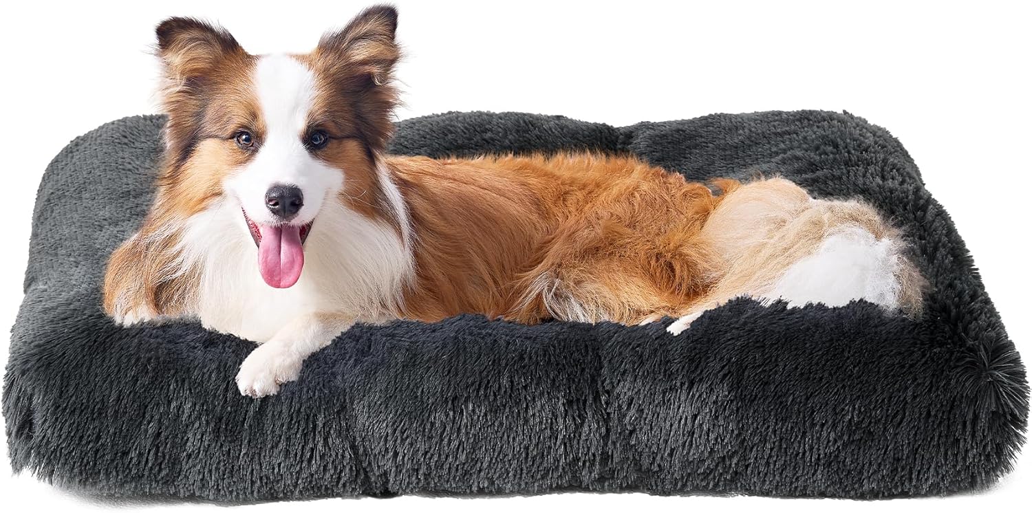Пухкаво кучешко легло EHEYCIGA за големи кучета XL, 105 x 70 см, Переща се възглавница за кучета, Мека неплъзгаща се постелка за кучета с дълъг плюш, Тъмносиво