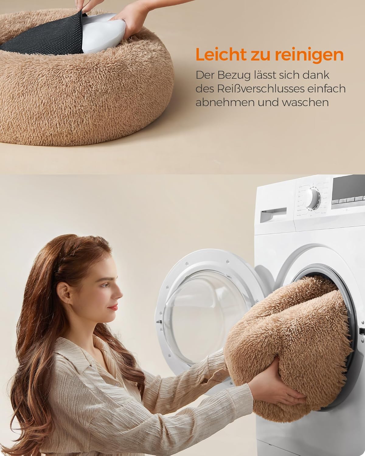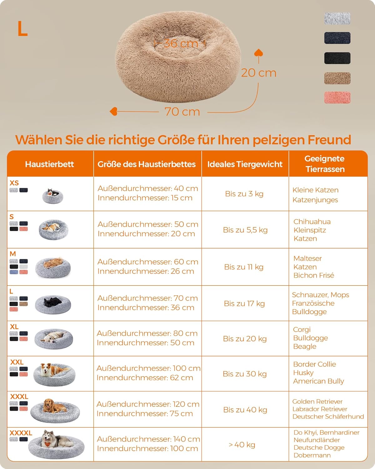 Уникалният цветен градиент и формата на поничка на това кучешко легло перфектно се вписват в стила на вашия дом. Възглавницата с пълнеж от мемори пяна не само осигурява на вашия домашен любимец високо ниво на комфорт по време на сън, но и гарантира дълъг експлоатационен живот. Вашият домашен любимец заслужава това красиво и меко гнездо!