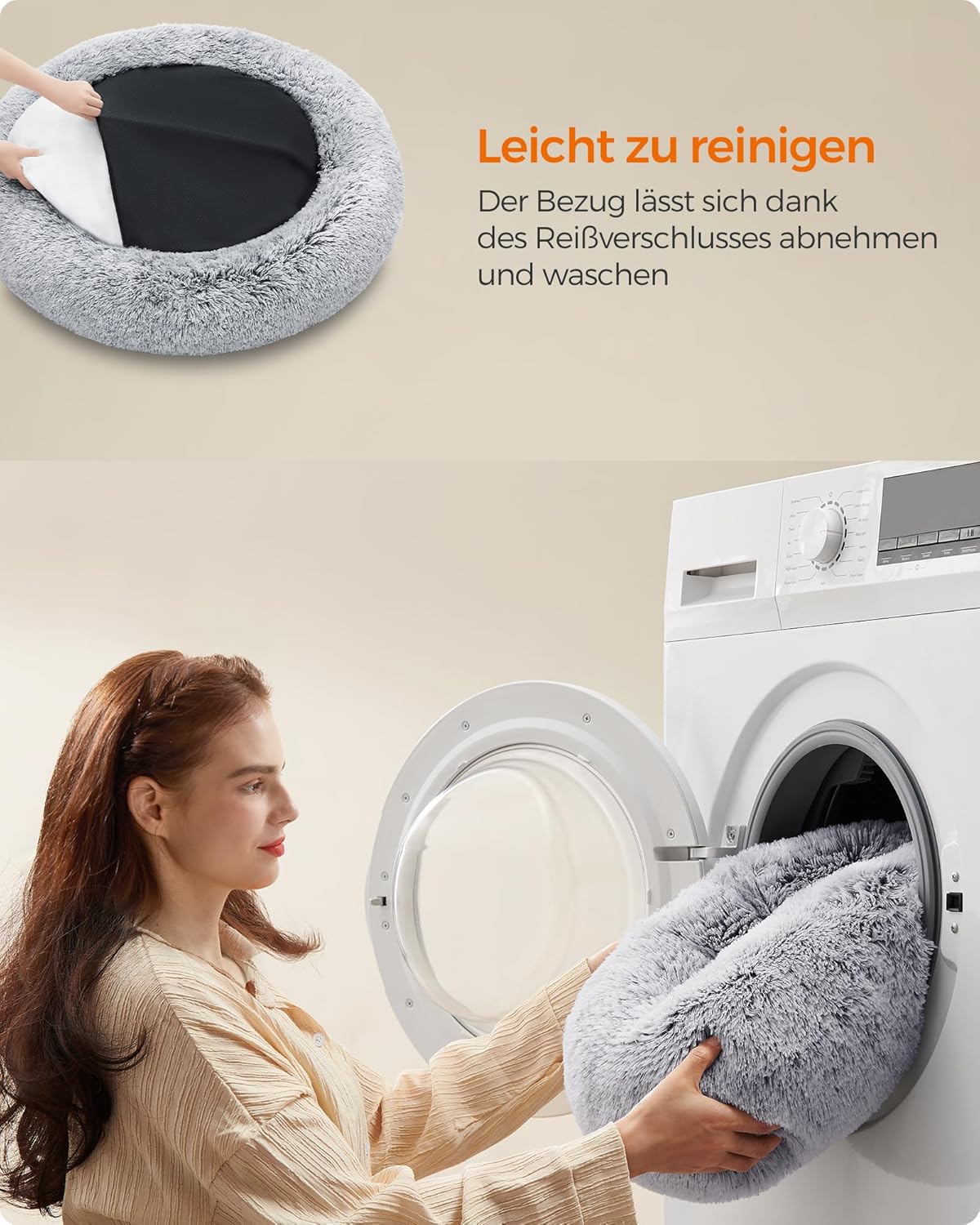 Уникалният цветен градиент и формата на поничка на това кучешко легло перфектно се вписват в стила на вашия дом. Възглавницата с пълнеж от мемори пяна не само осигурява на вашия домашен любимец високо ниво на комфорт по време на сън, но и гарантира дълъг експлоатационен живот. Вашият домашен любимец заслужава това красиво и меко гнездо!