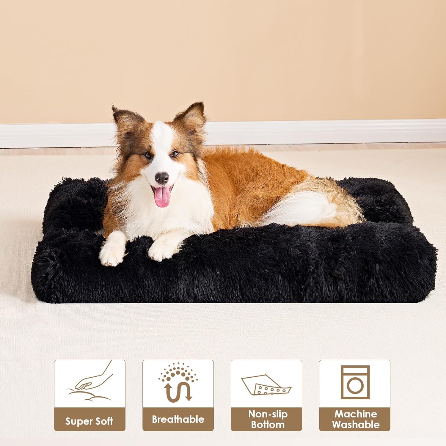 Пухкаво легло за кучета EHEYCIGA, за средни кучета, възглавница за кучета, за големи кучета, може да се пере, мека неплъзгаща се постелка за кучета с дълъг плюш, черна, 90 x 60 см