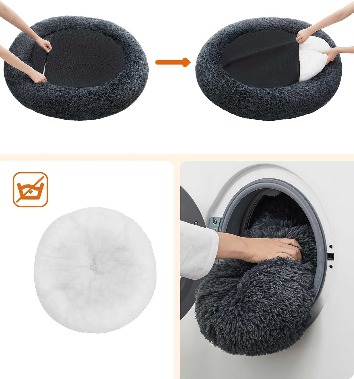 The centre cushion is filled with memory foam flakes to provide a good lying comfort. The zipper makes it easy to remove the cover for cleaning.