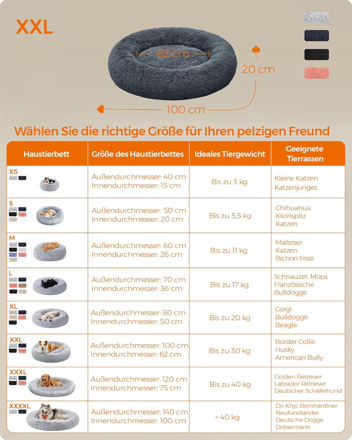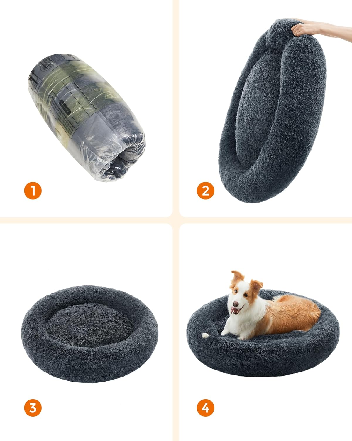 Уникалният цветен градиент и формата на поничка на това кучешко легло перфектно се вписват в стила на вашия дом. Възглавницата с пълнеж от мемори пяна не само осигурява на вашия домашен любимец високо ниво на комфорт по време на сън, но и гарантира дълъг експлоатационен живот. Вашият домашен любимец заслужава това красиво и меко гнездо!