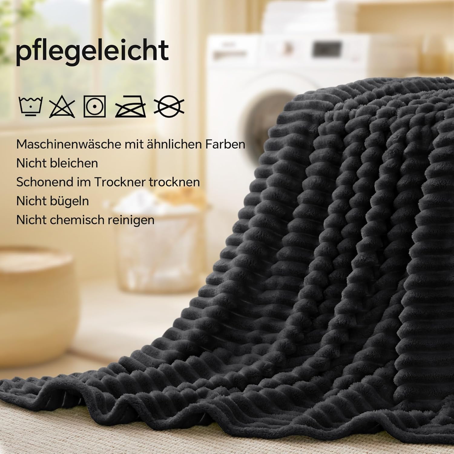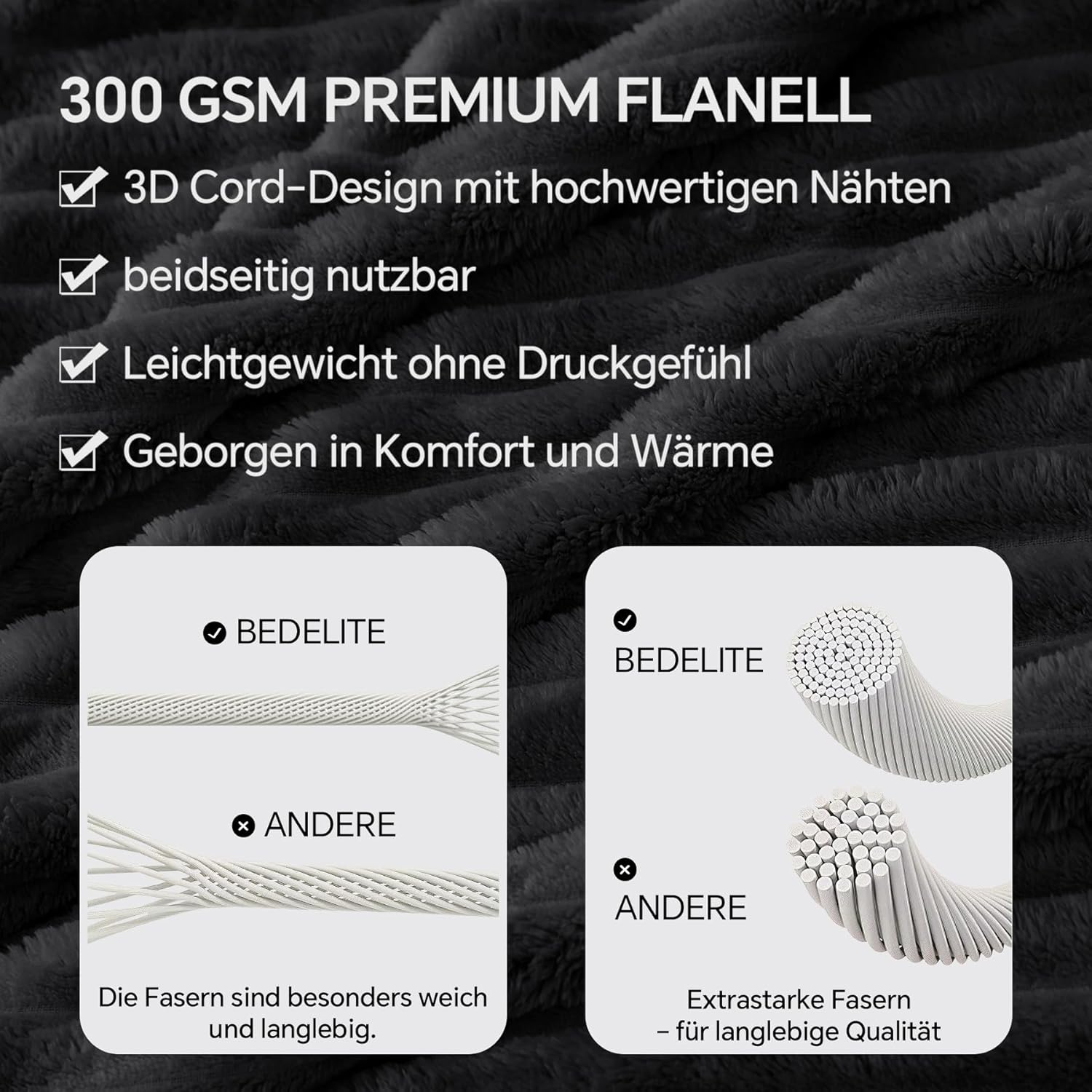 Пухкаво одеяло BEDELITE 150 x 200 см - Меки XL фланелени одеяла, черно за диван, декоративни райета, поларено одеяло като покривало за дивана за хол, одеяло за единични легла с широка употреба