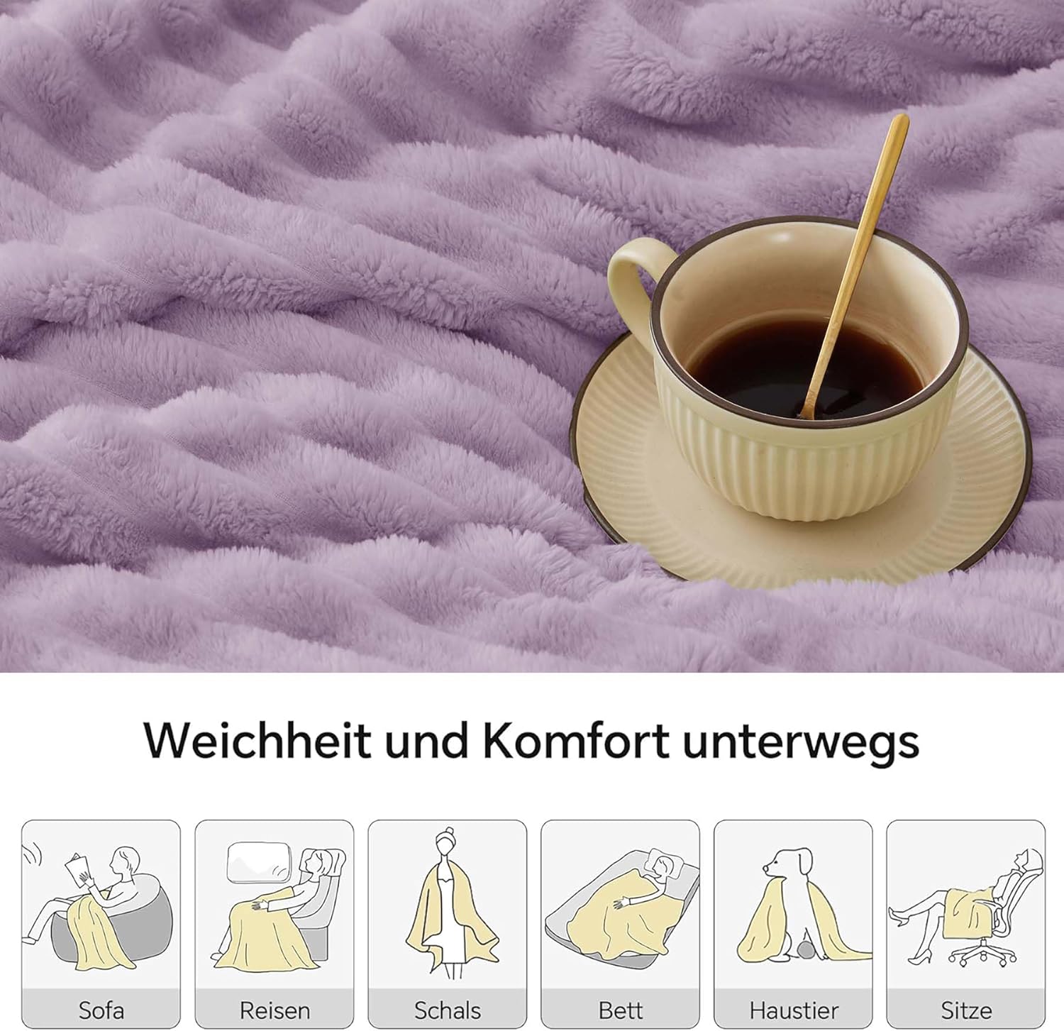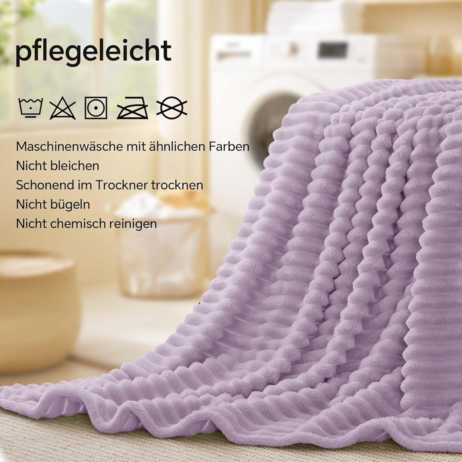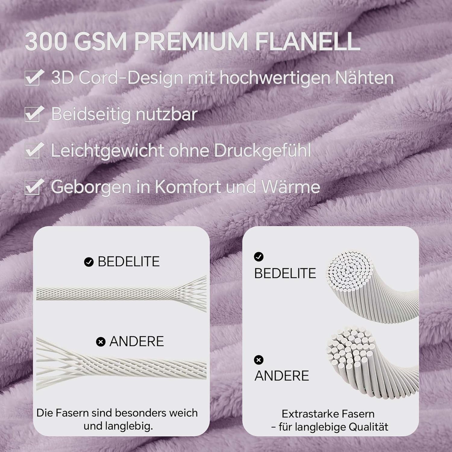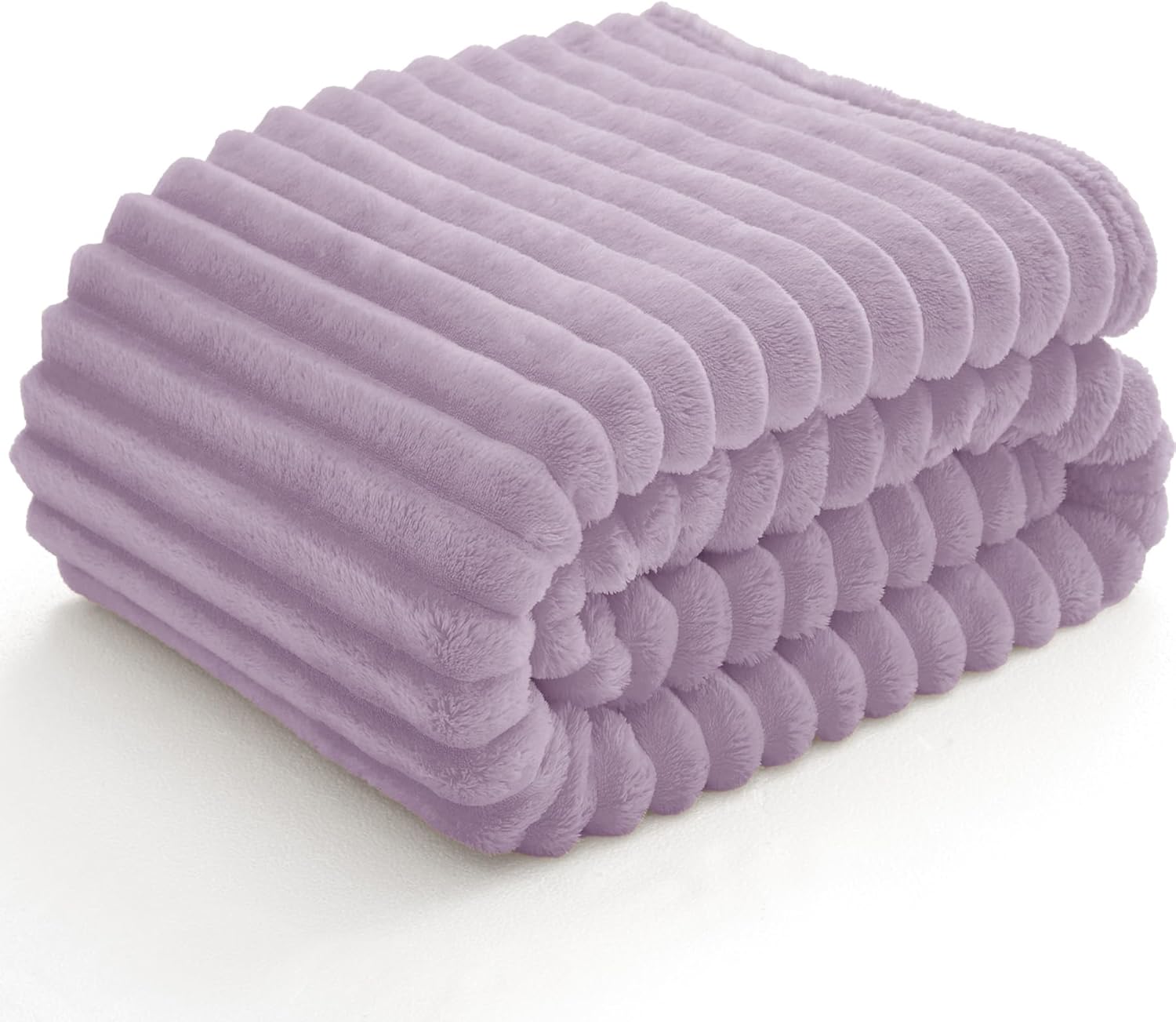 Пухкаво одеяло BEDELITE 150 x 200 см - Меки XL фланелени одеяла Лавандула за диван, Декоративни райета Одеяло от корд полар като покривало за дивана за хол, Одеяло за единични легла с широка употреба