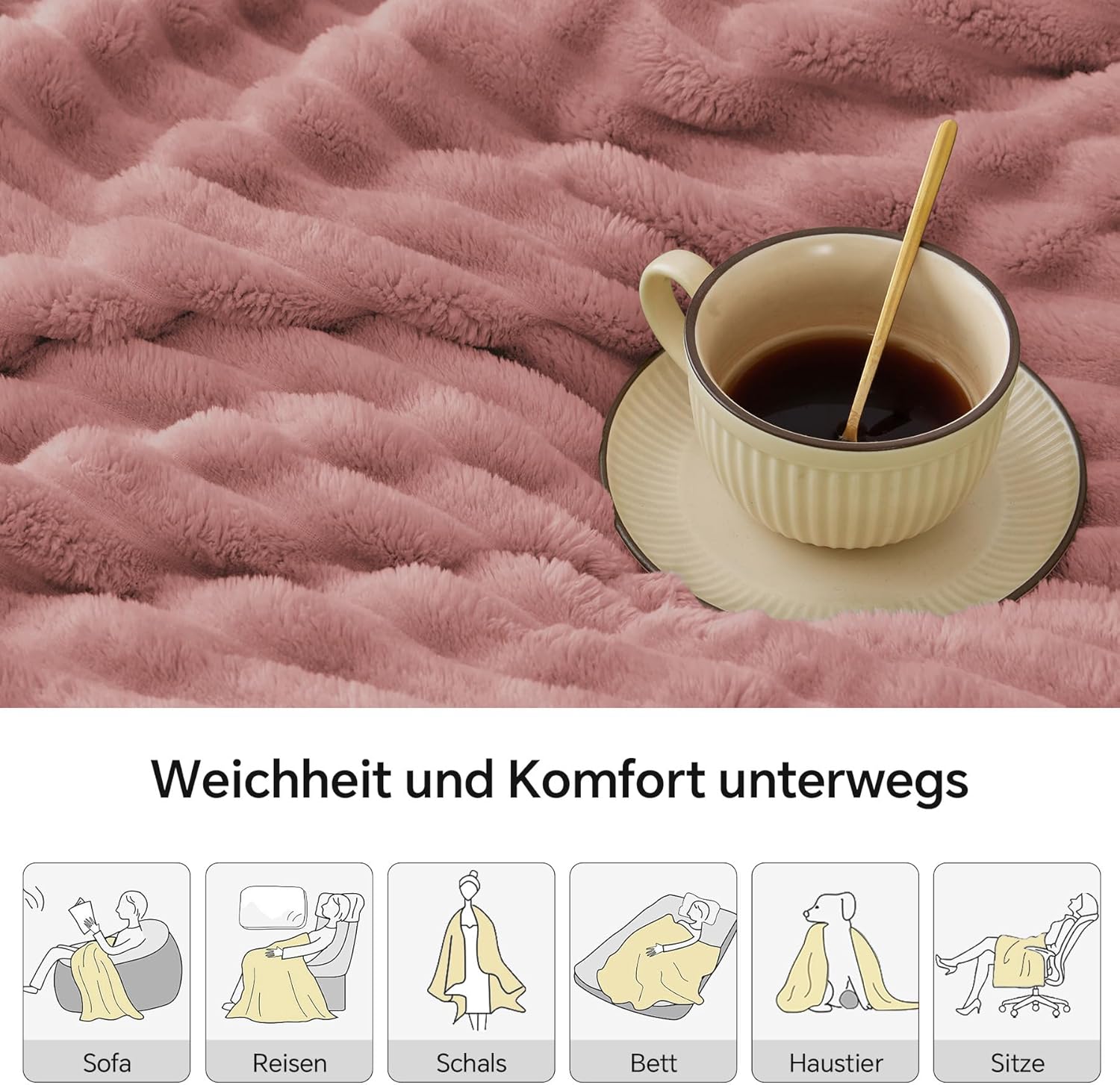 Пухкаво одеяло BEDELITE 150 x 200 см - Меки XL фланелени одеяла, розови за диван, декоративни райета, поларено одеяло като покривало за дивана за хол, одеяло за единични легла с широка употреба