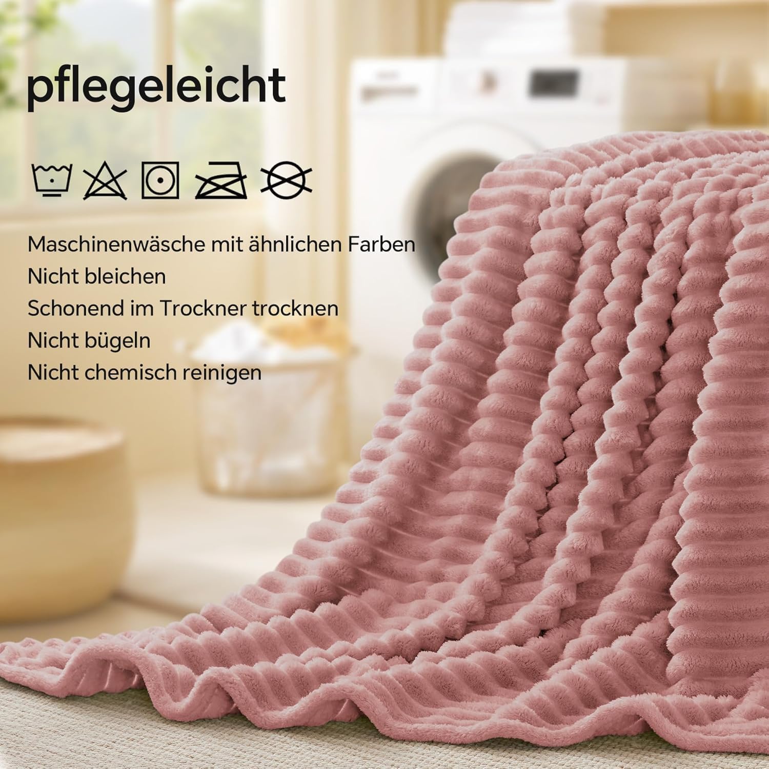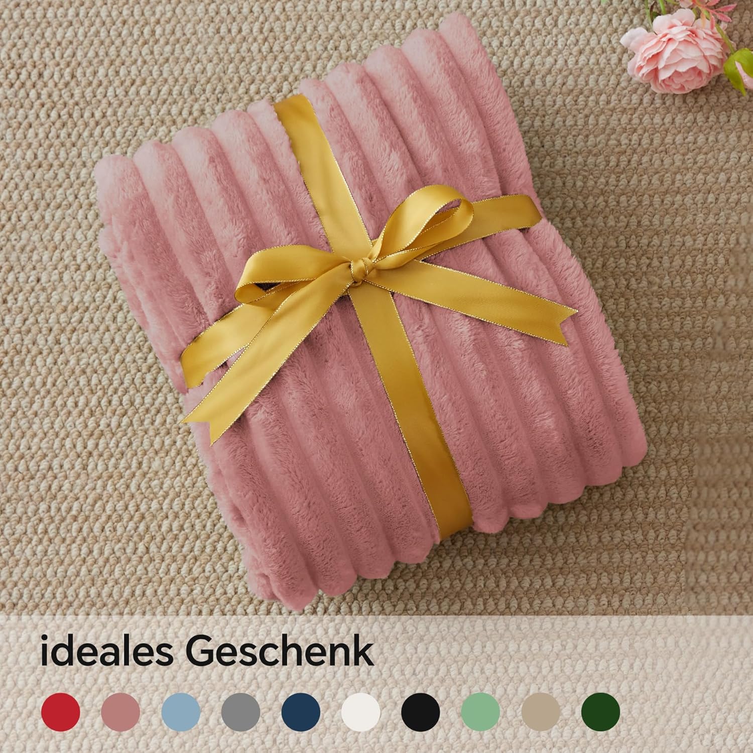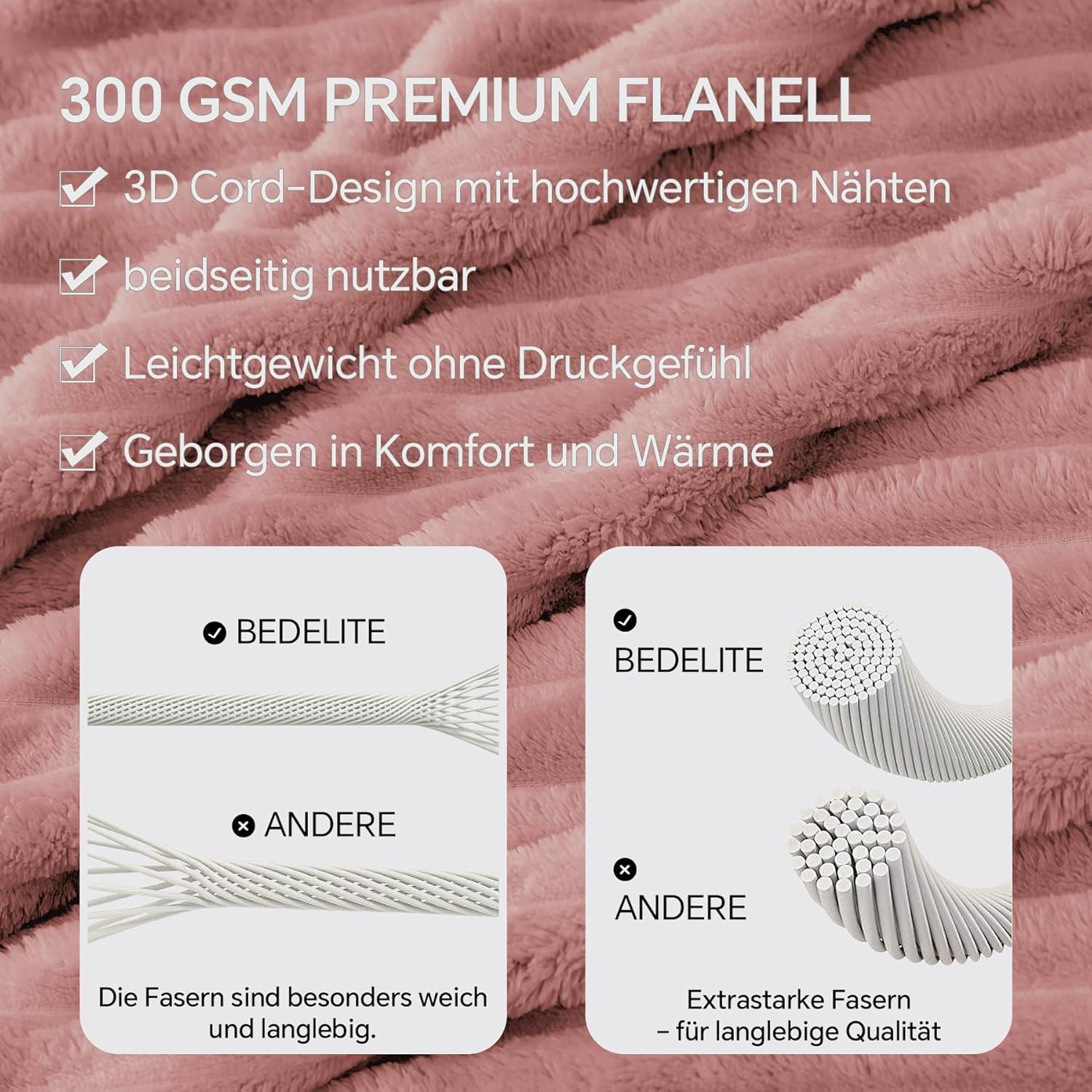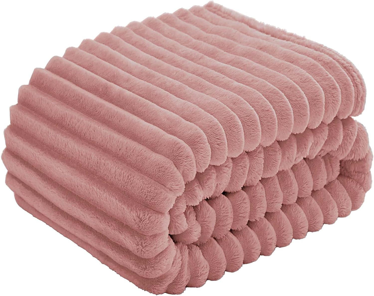 Пухкаво одеяло BEDELITE Cuddly Fluffy Blanket Large - Меки фланелени одеяла Розови 220 x 240 см за легло, Декоративни райета Корд Флийс одеяло като покривало за спалня, XXL одеяло за широка употреба