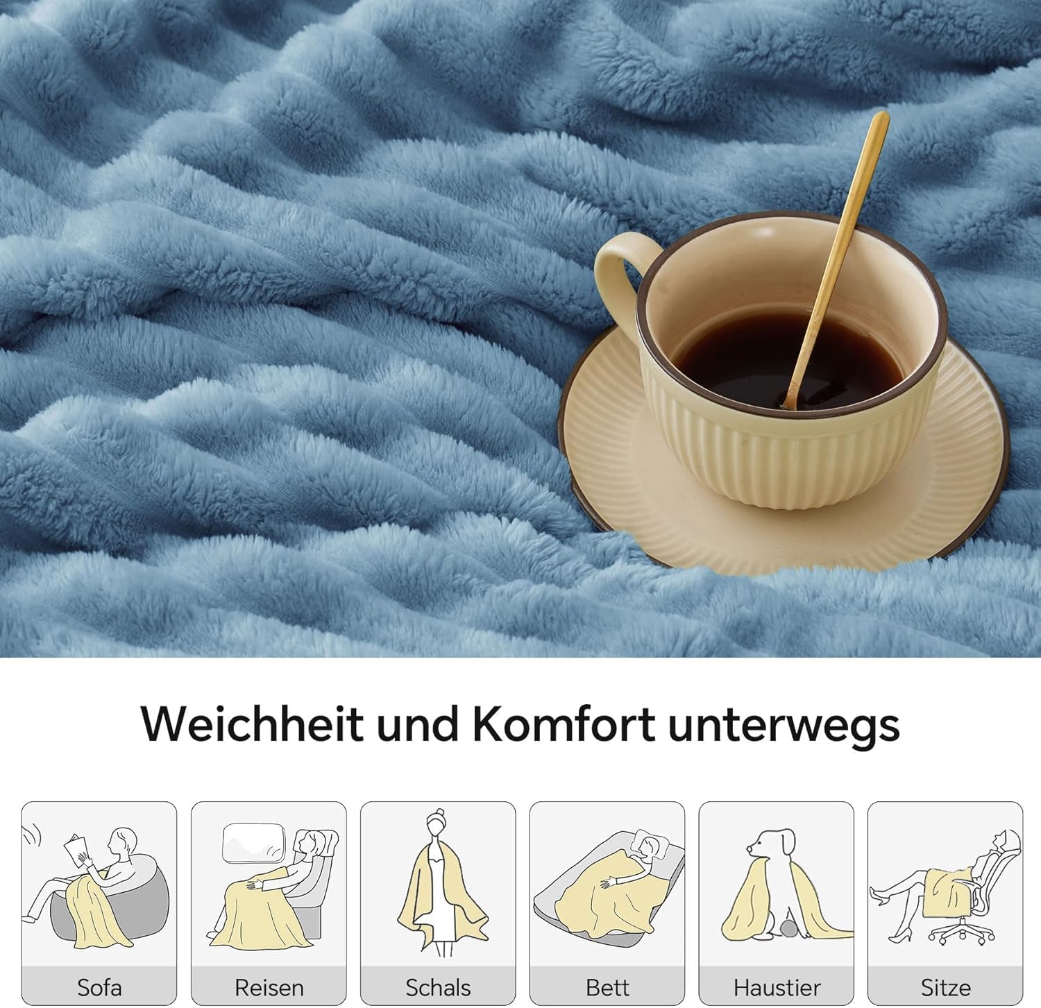 • Многофункционално приложение: одеяло за всички поводи. Лято и зима, бизнес и личен живот. Когато подремвате, правите пикник или гледате телевизия на леглото си, нашите одеяла осигуряват трайна топлина и комфорт.